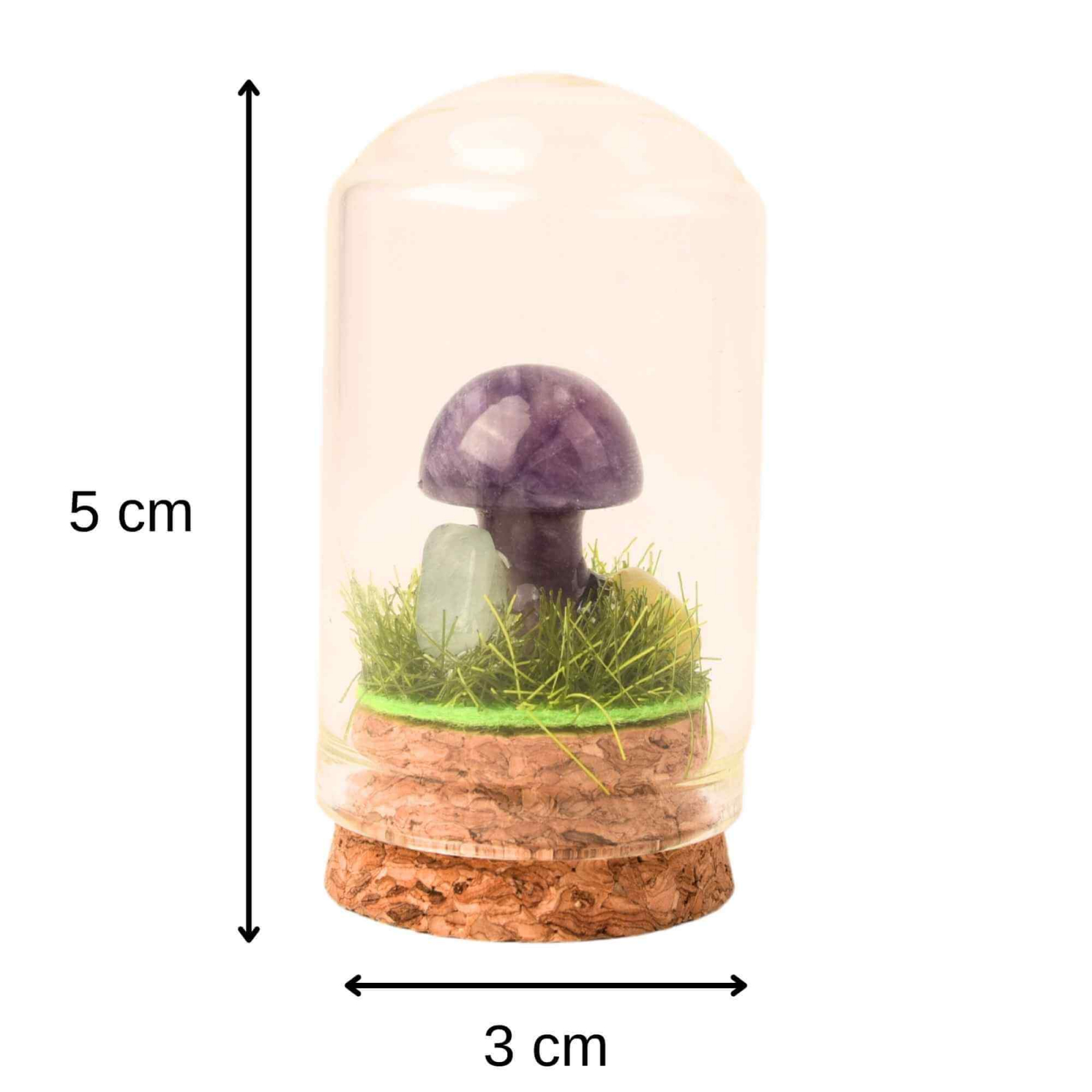 Figurina din piatra naturala semipretioasa Ametist in forma de ciuperca in mini terrarium 5 cm din sticla