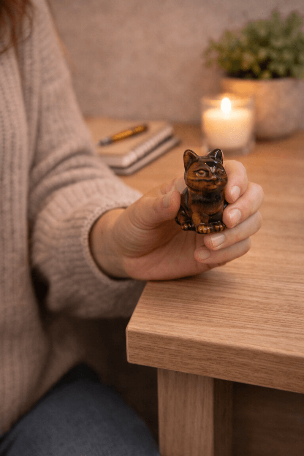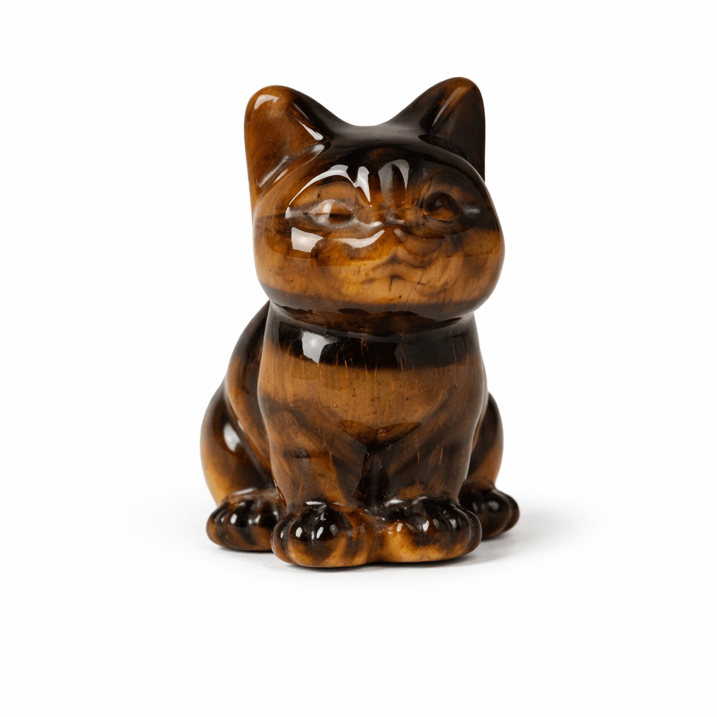 Aceasta figurina din ochi de tigru, sculptata sub forma unei pisici, emana forta, siguranta si protectie. Pisica este un simbol vechi al vigilentei, independentei si protectiei energetice, fiind considerata un gardian al spatiului personal si al echilibrului subtil.