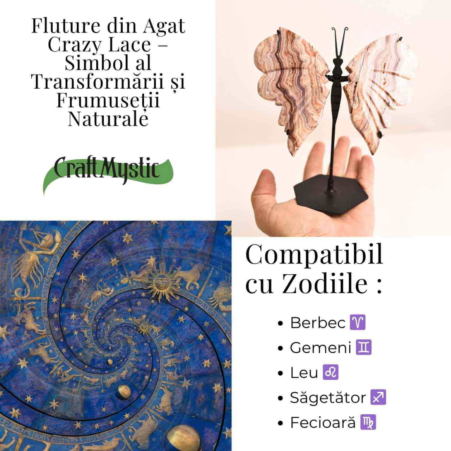 Un simbol al renasterii si al energiei pure. Acest fluture din Crazy Lace Agat nu este doar un decor – este o declaratie de echilibru, frumusete si transformare interioara.
