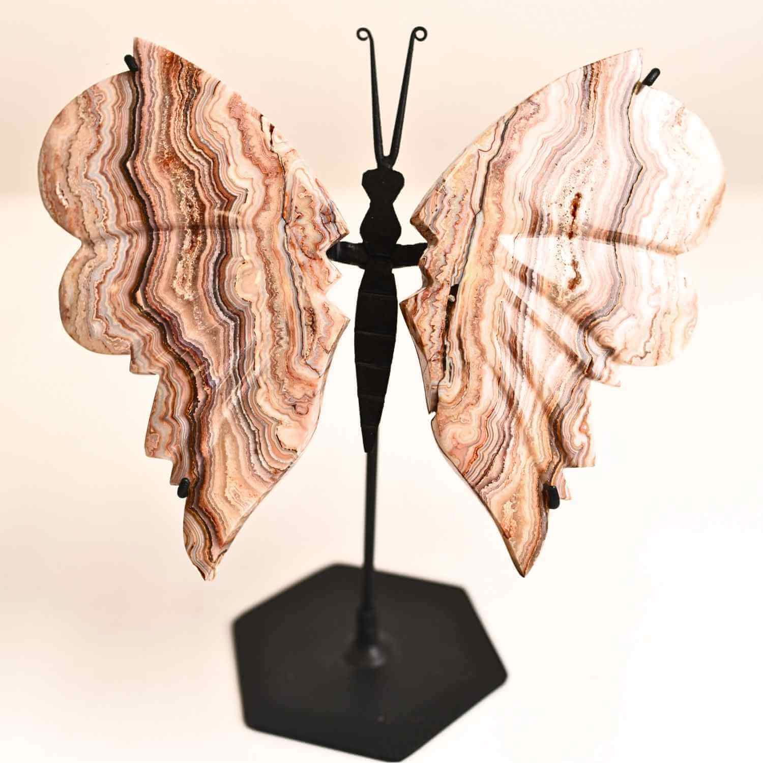 Un fluture sculptat din agat cu valuri intense de culoare – o piesa decorativa cu sens, ce aduce armonie si stare de bine in orice spatiu.