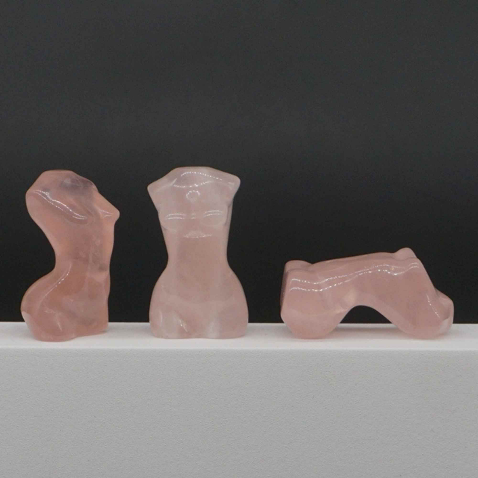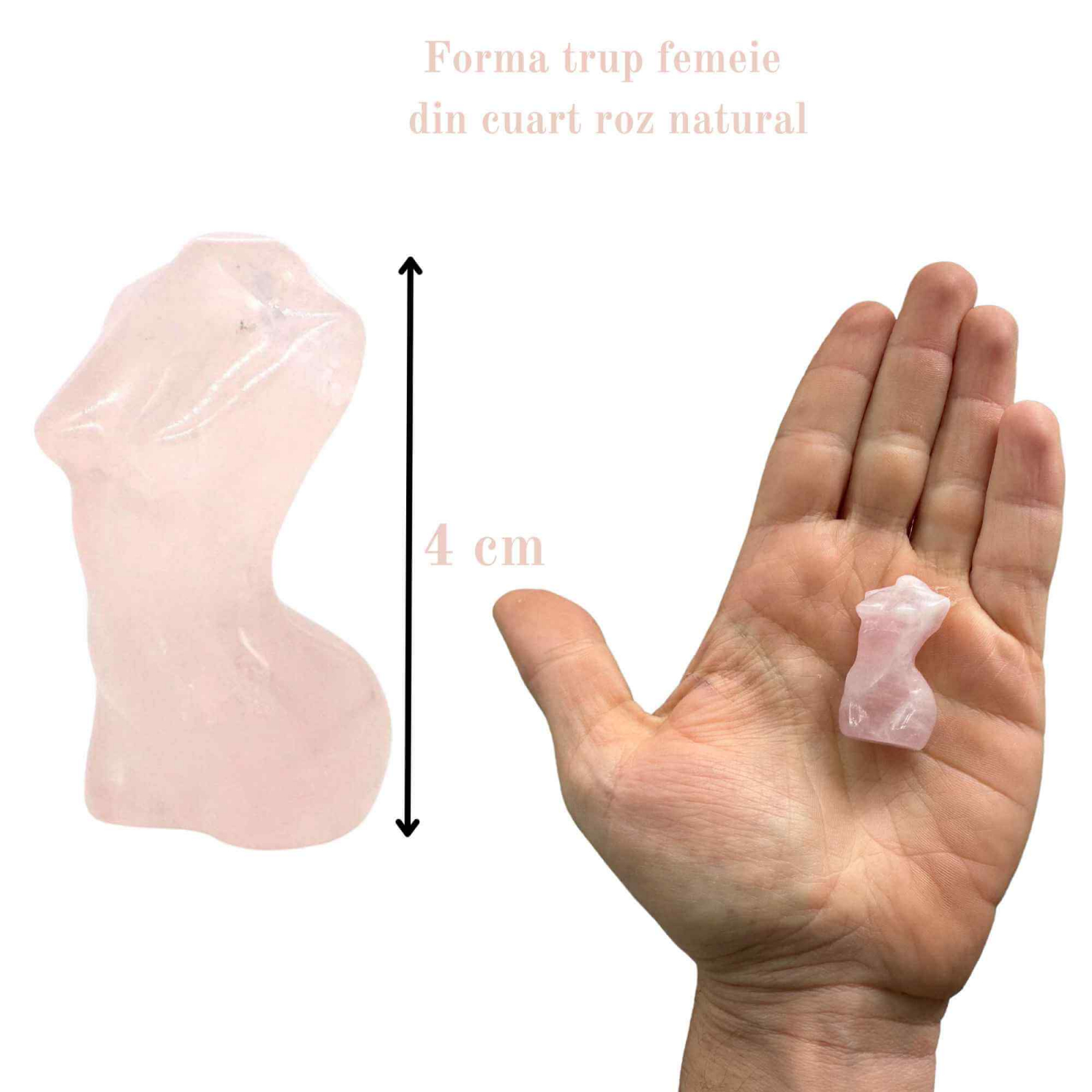Forma bust femeie din cristal natural Cuart Roz 4 cm sculptat manual