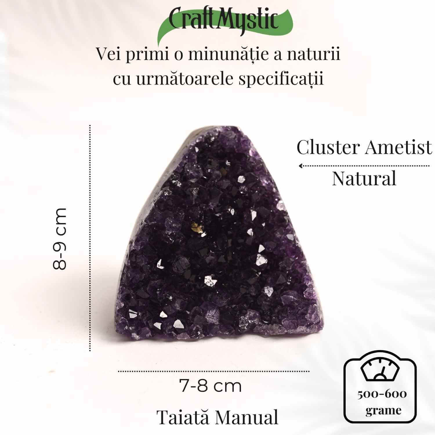 Geoda de ametist natural, taiata manual – Protectie si echilibru H= 8-9 cm L= 7-8 cm 500-600 gr
