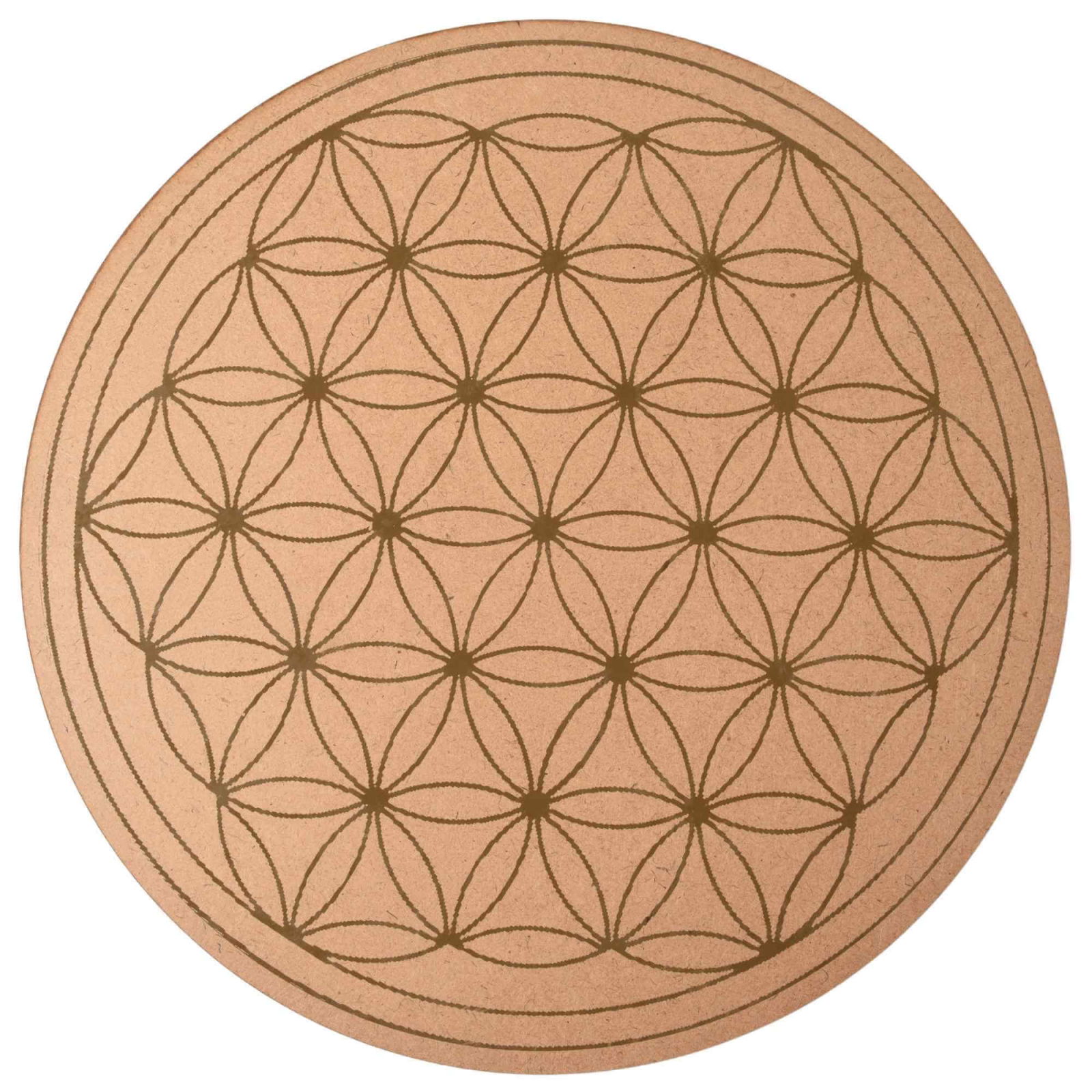 • Design Sacru si Geometric: Aceasta grila pentru cristale prezinta modelul sacru al Florii Vietii, o structura geometrica alcatuita din cercuri multiple, dispuse uniform si care se suprapun. Dispunerea cercurilor este efectuata in jurul unui punct central, creand un model floral cu o simetrie similara unui hexagon. Acest design nu este doar estetic placut, ci si incarcat de semnificatii mistice si spirituale;