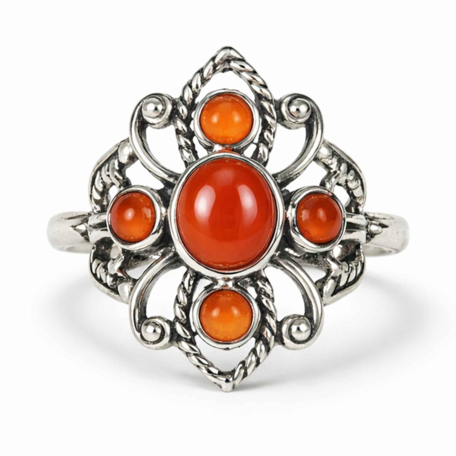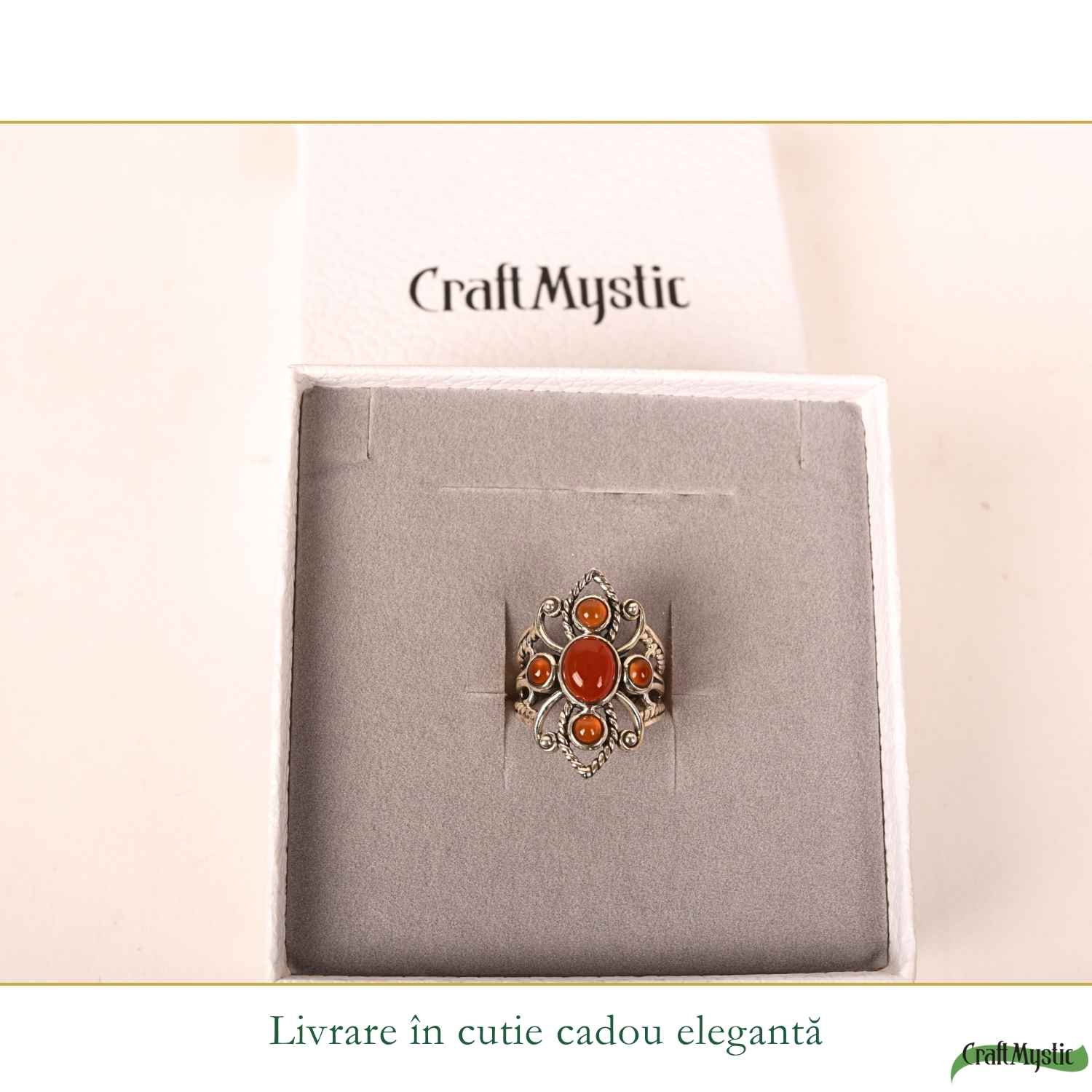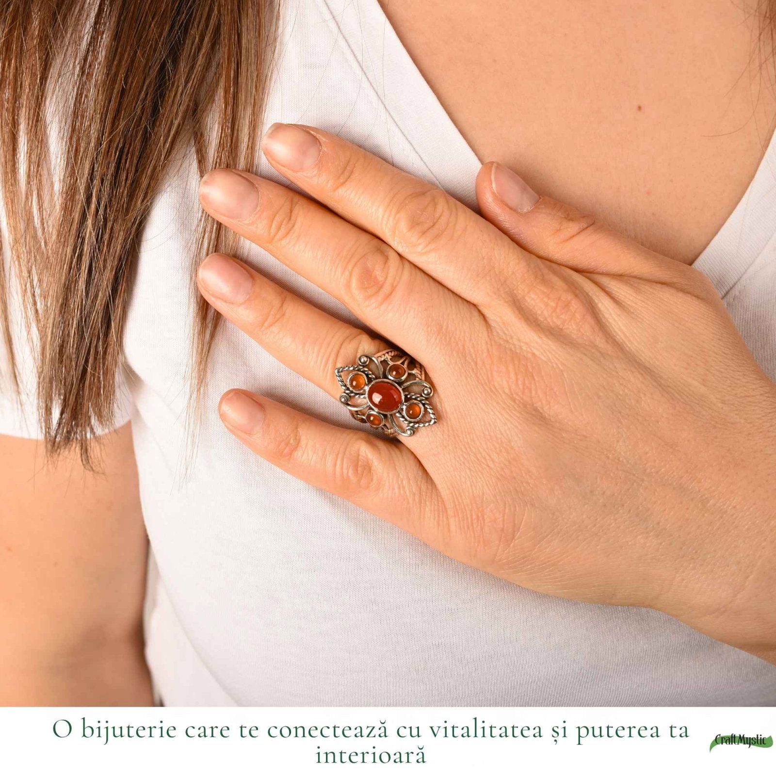 Inel din argint 925 cu Carneol natural, în stil vintage – o bijuterie statement, plină de energie și personalitate. Îl porți ca să te simți încrezătoare și puternică în fiecare zi.