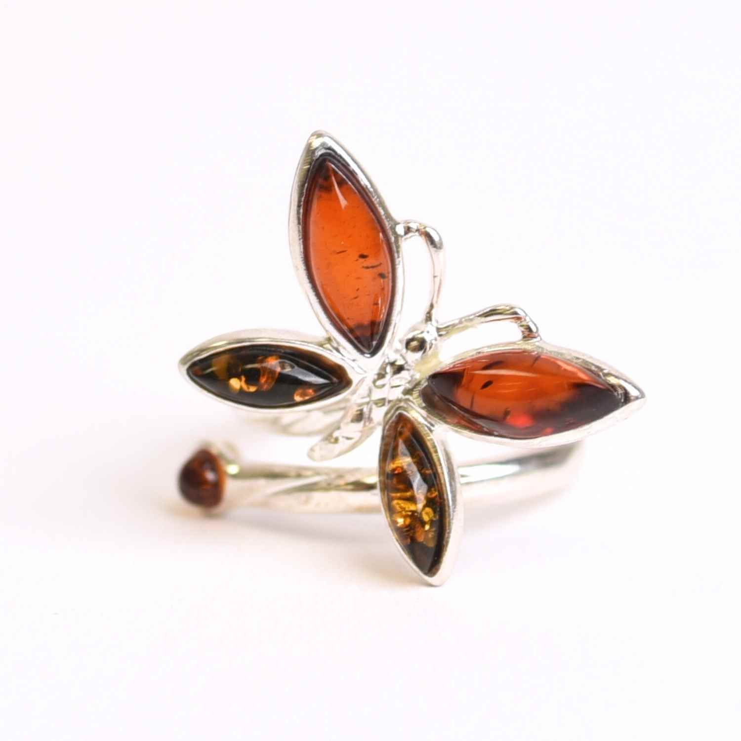 Acest inel din argint 925, împodobit cu chihlimbar natural, este creat sub forma delicată a unui fluture – simbol al renașterii, al transformării și al libertății sufletești. Chihlimbarul, piatra soarelui străvechi, aduce căldură, optimism și vitalitate, împletind frumusețea naturii cu energia pură a vieții.