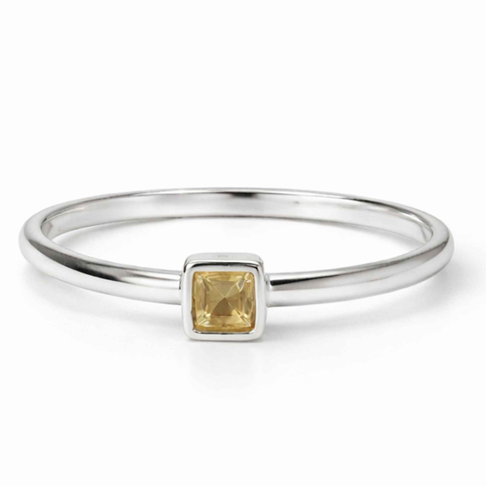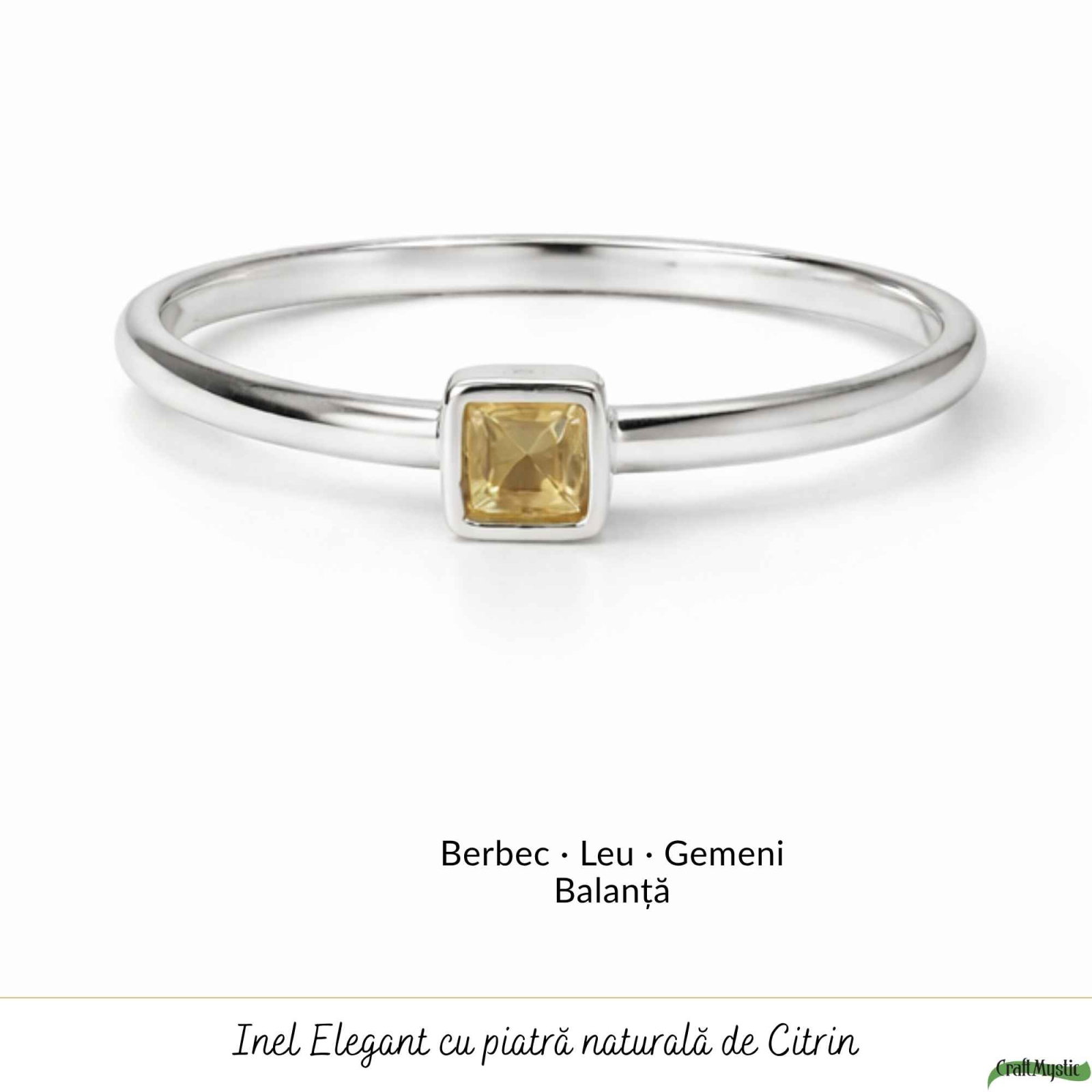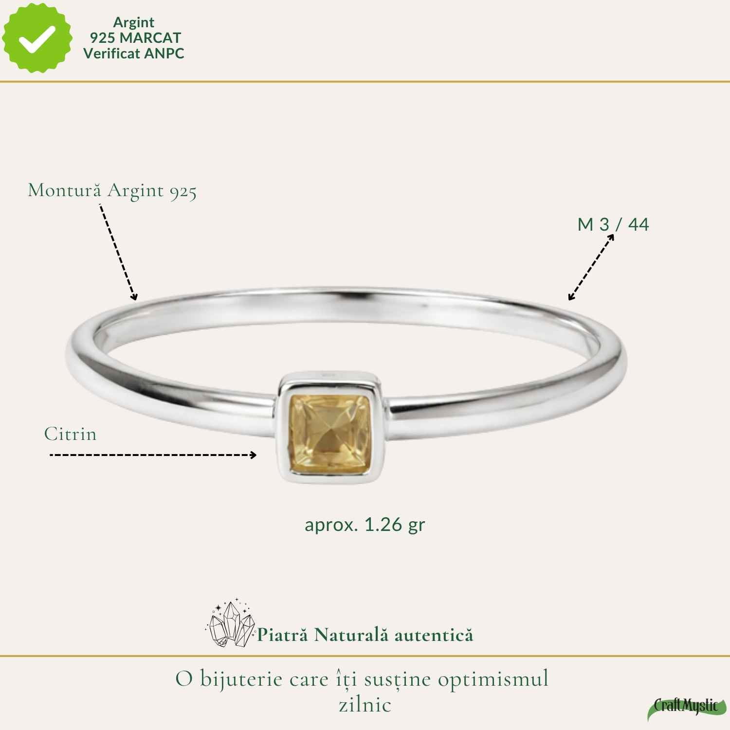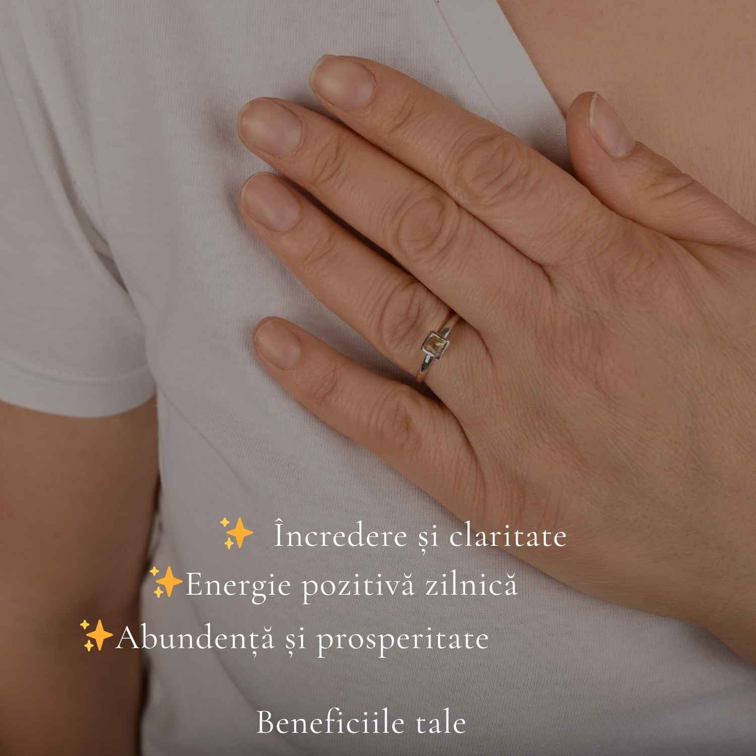 Inel din argint 925 cu Citrin natural, formă pătrată – stabilitate, claritate și energie pozitivă. Fin și ușor, îl porți zilnic ca să te simți echilibrată și încrezătoare.