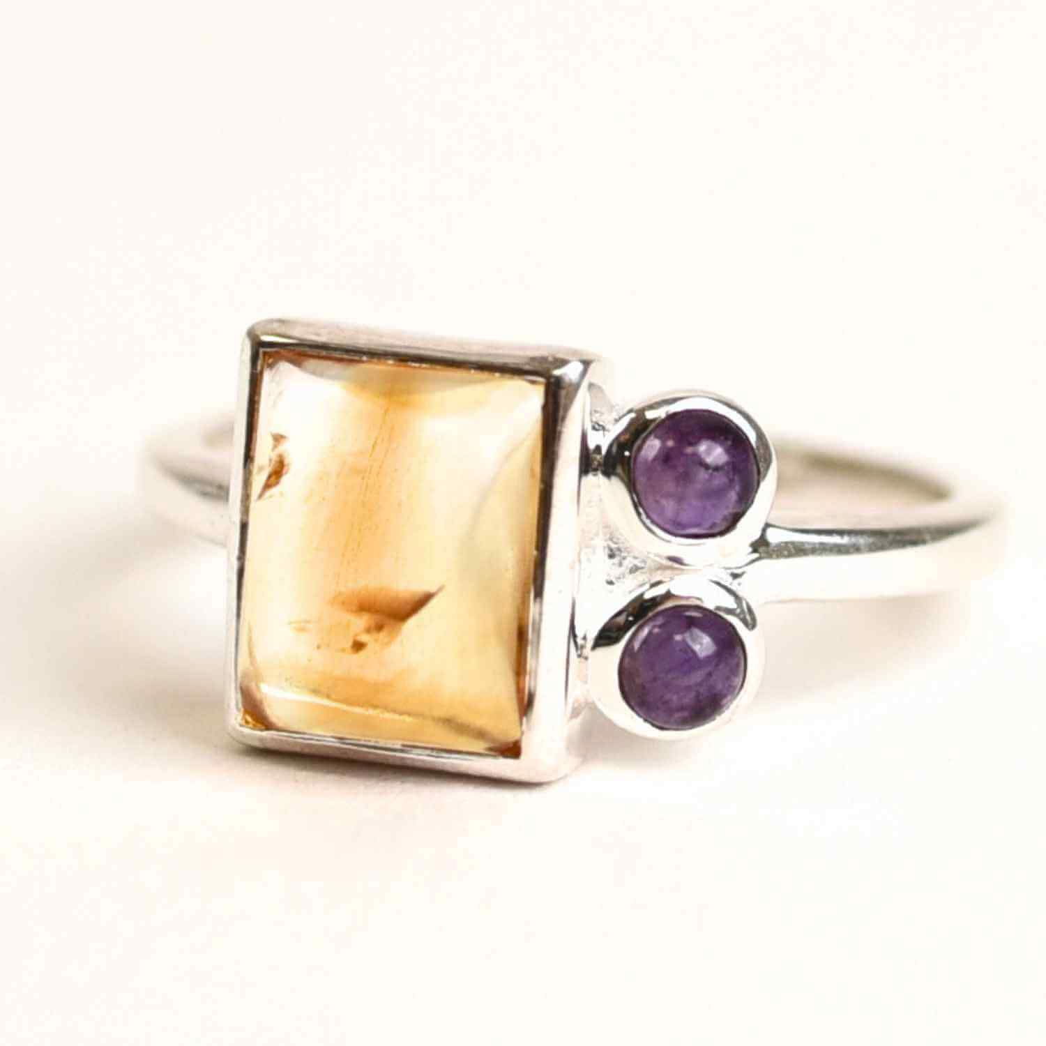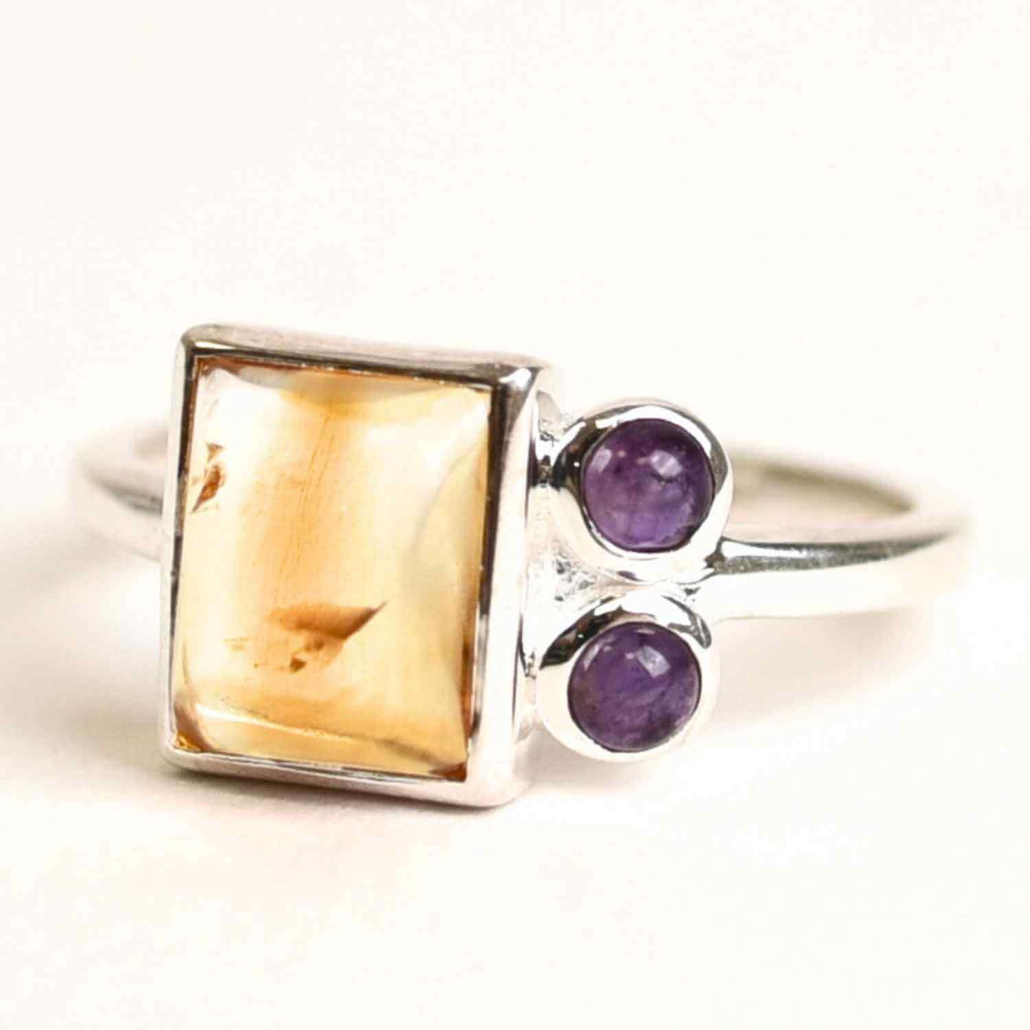 Inel argint 925 cu Citrin si Ametist – Echilibru si Claritate Interioara