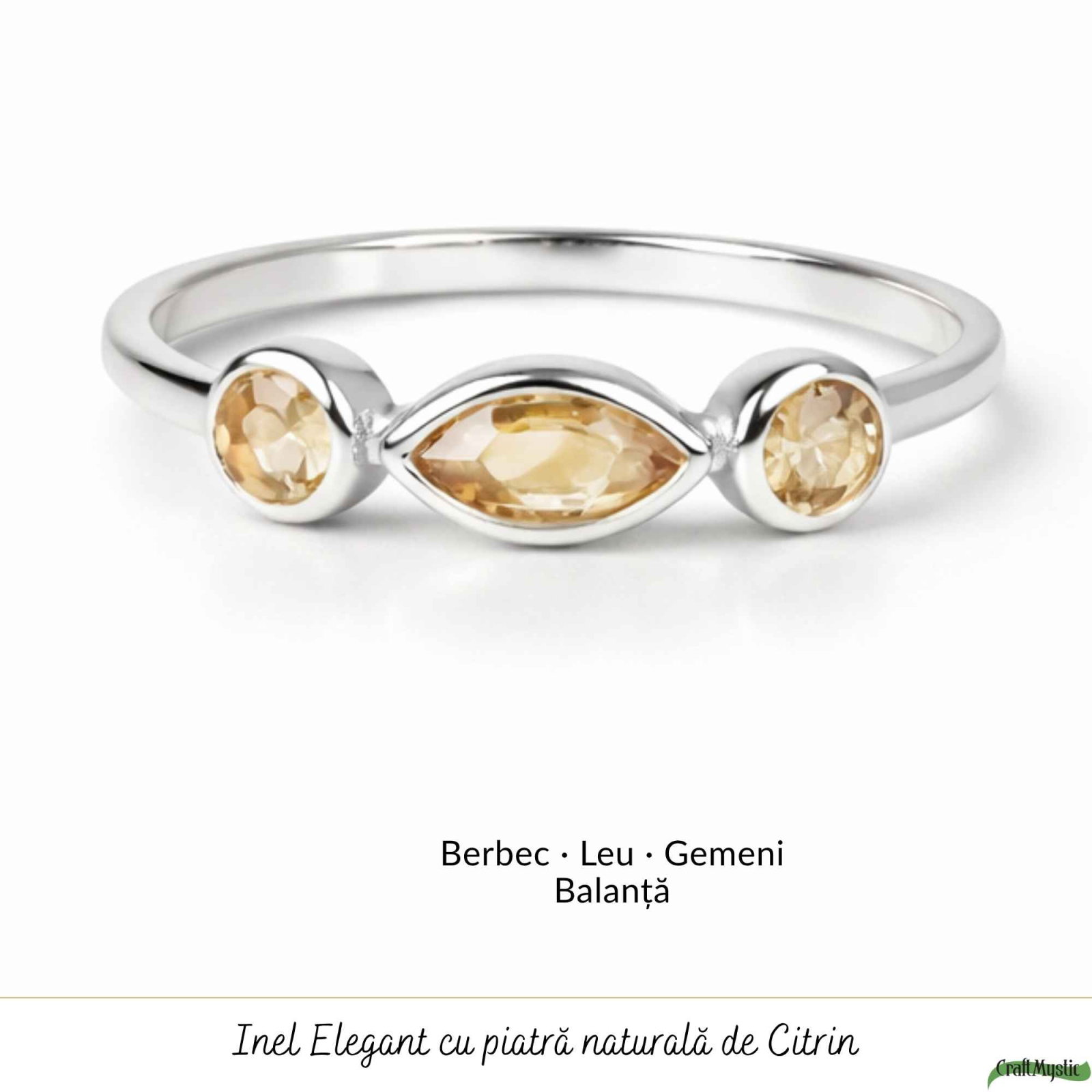 Inel din argint 925 cu triplu Citrin natural – un boost de energie, încredere și lumină. Fin și ușor, îl porți zilnic ca să-ți amplifici starea de bine.
