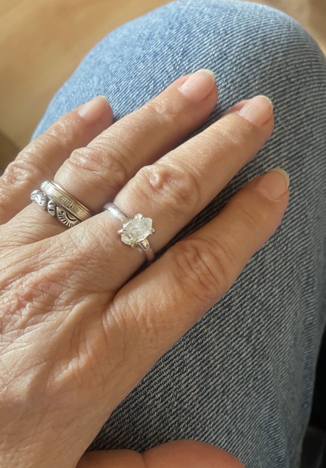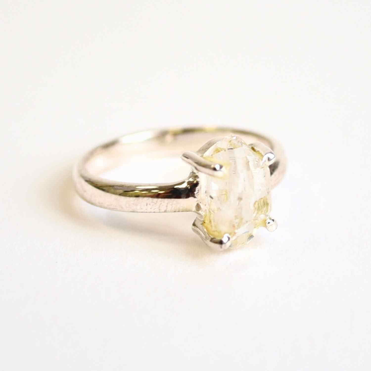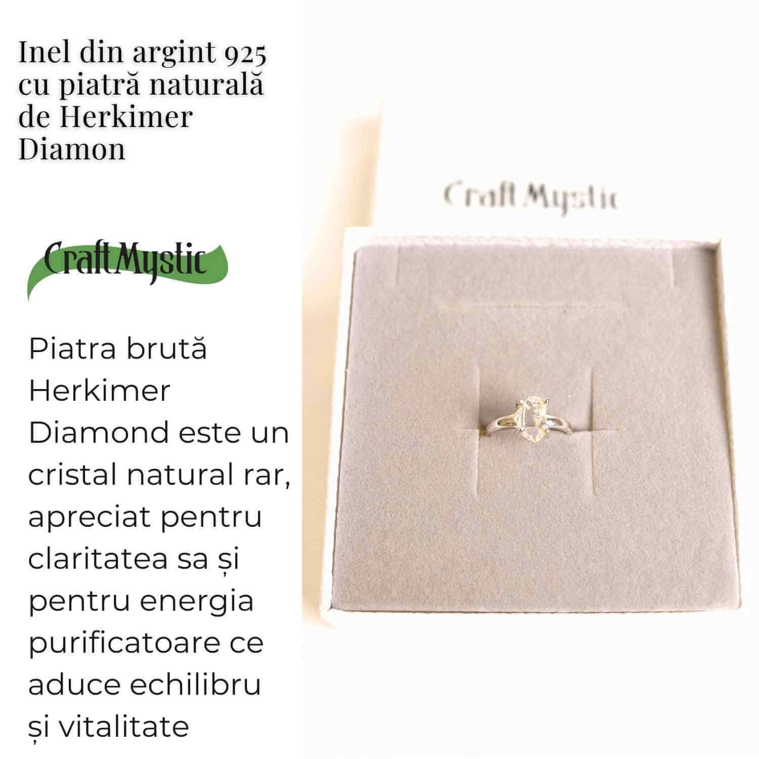 Poartă acest inel cu Herkimer Diamond ca pe o fereastră către sufletul tău – un talisman al clarității și al luminii divine care îți va ghida pașii spre echilibru și armonie interioară.