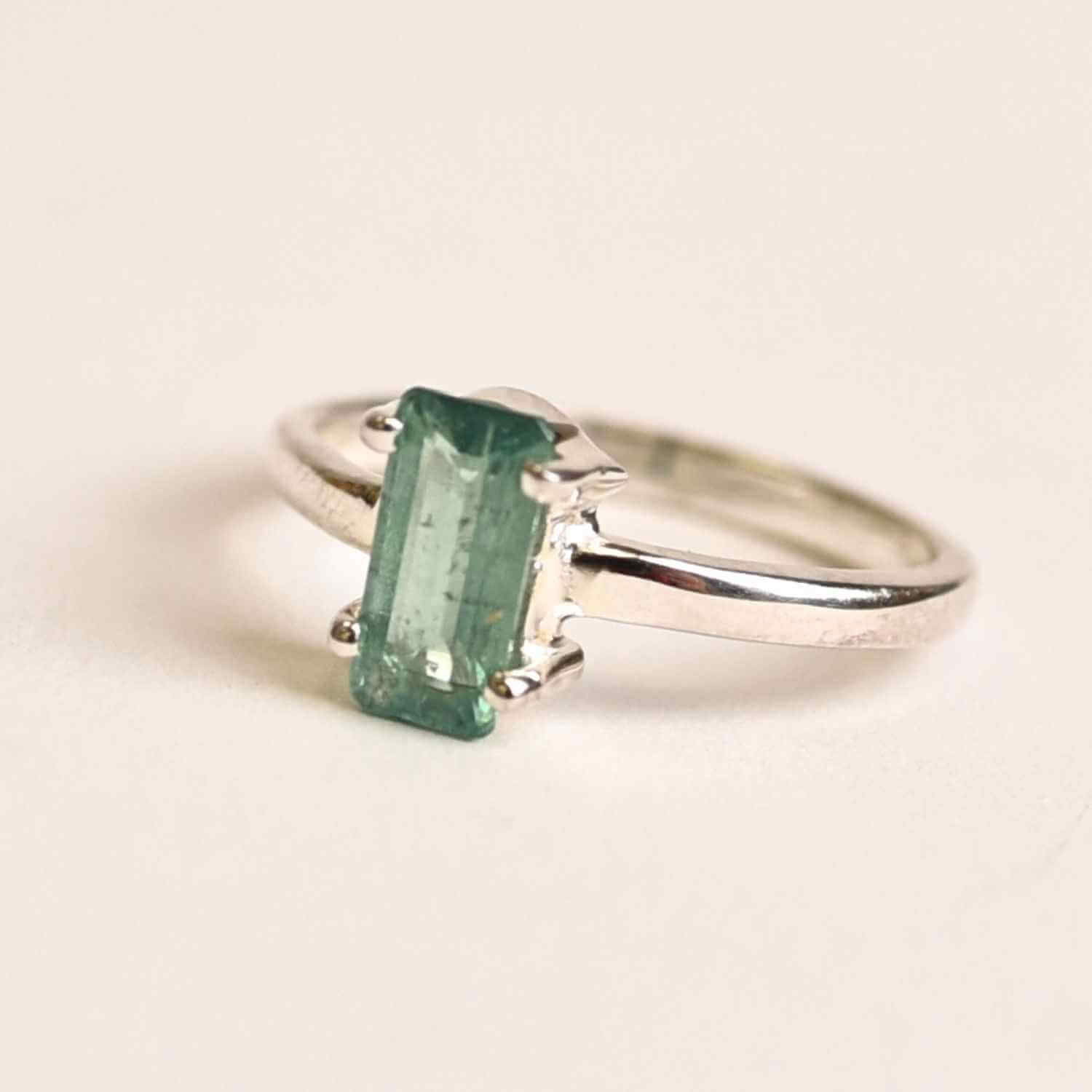 Piatra: Kyanit verde natural, tăietură dreptunghiulară (emerald-cut)