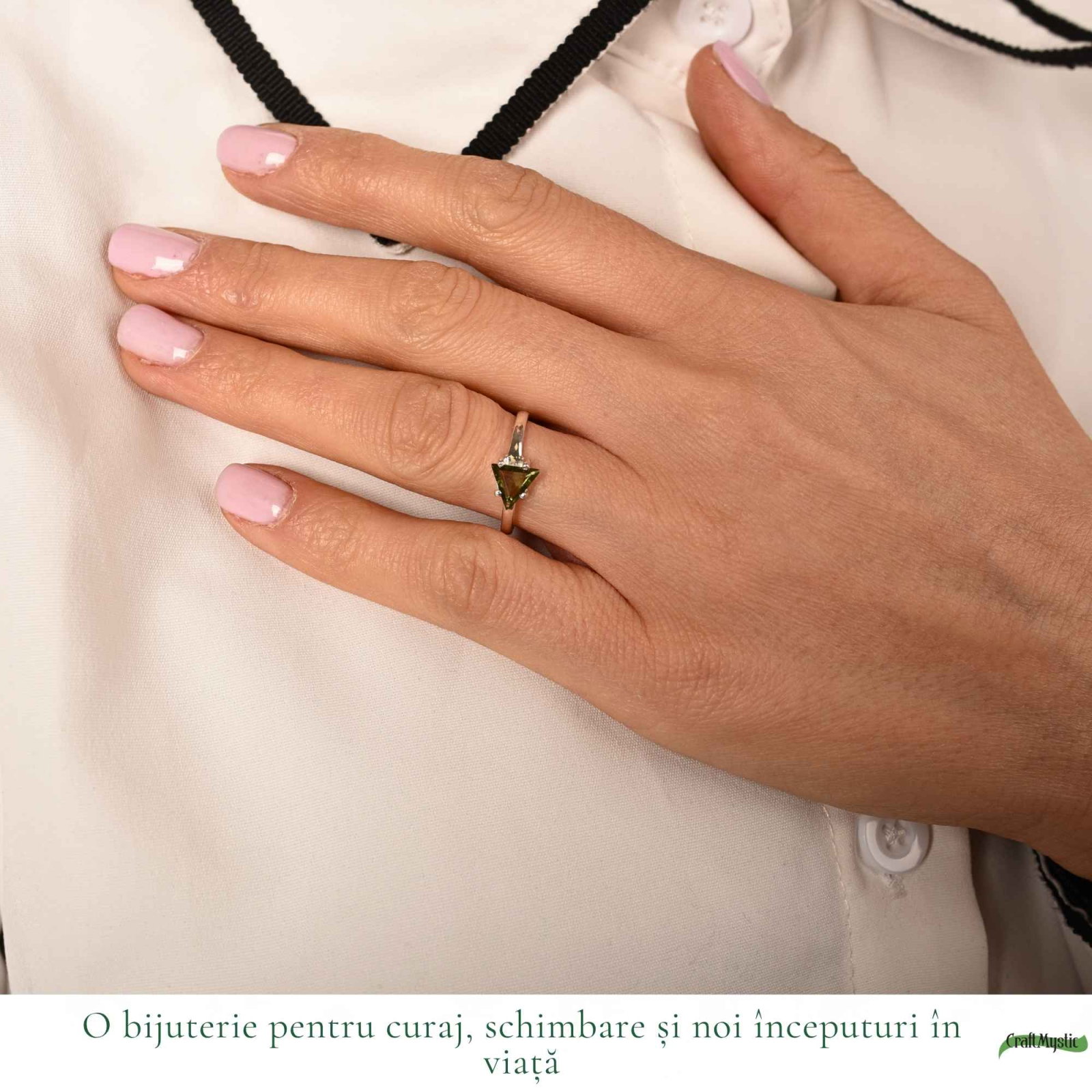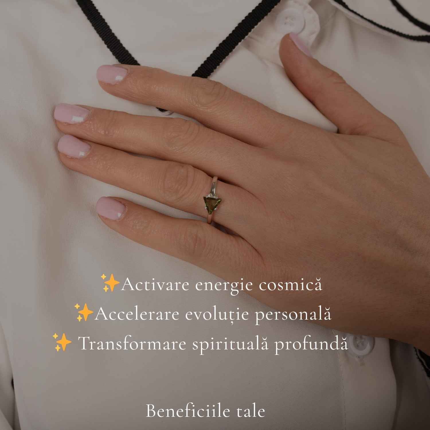 Acest inel cu moldavit în formă de triunghi aduce claritate și direcție exact când ai nevoie.