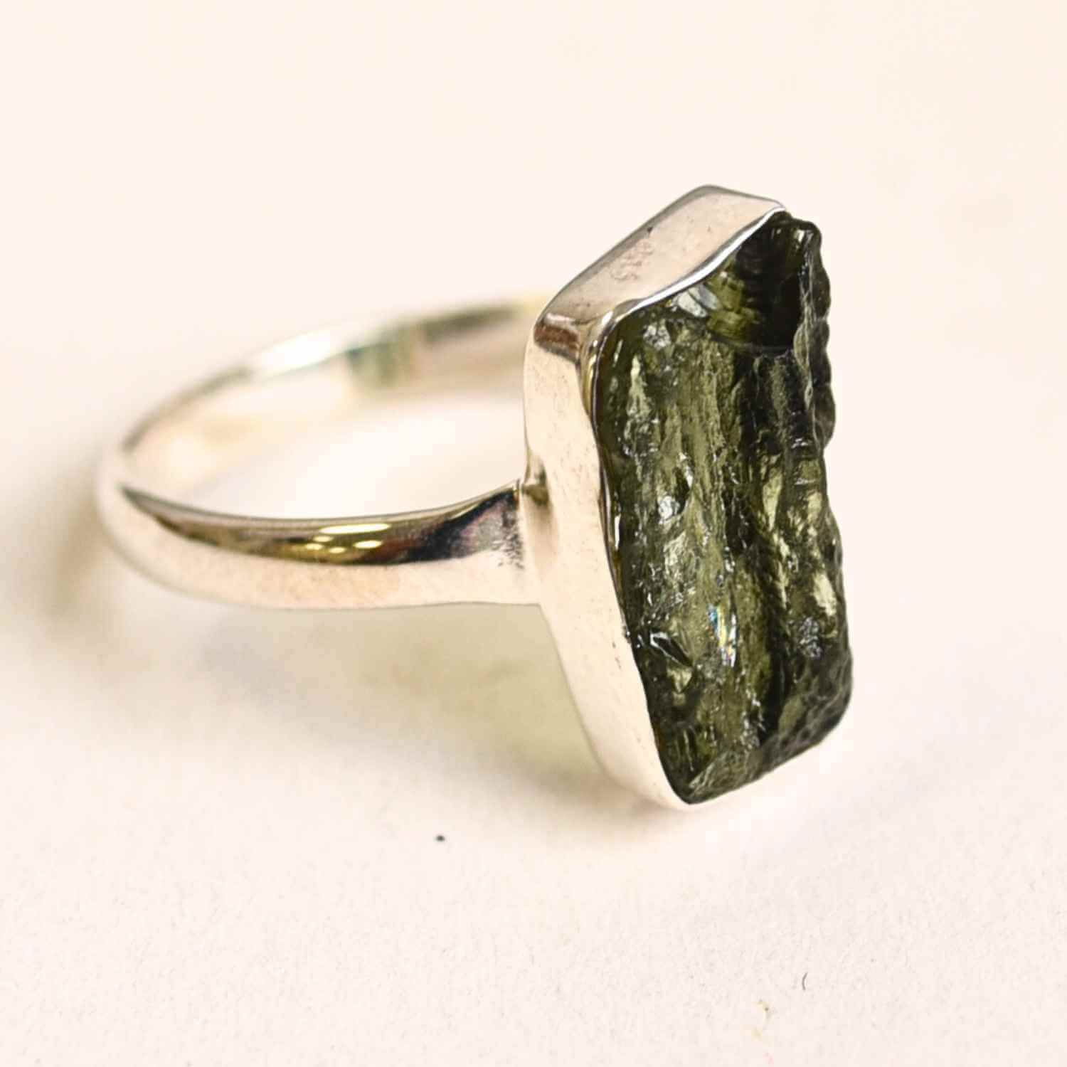 Inel argint 925 cu Moldavit natural brut Marime 58-59 (EU) / 8 (US) – Bijuterie rara, energie cosmica