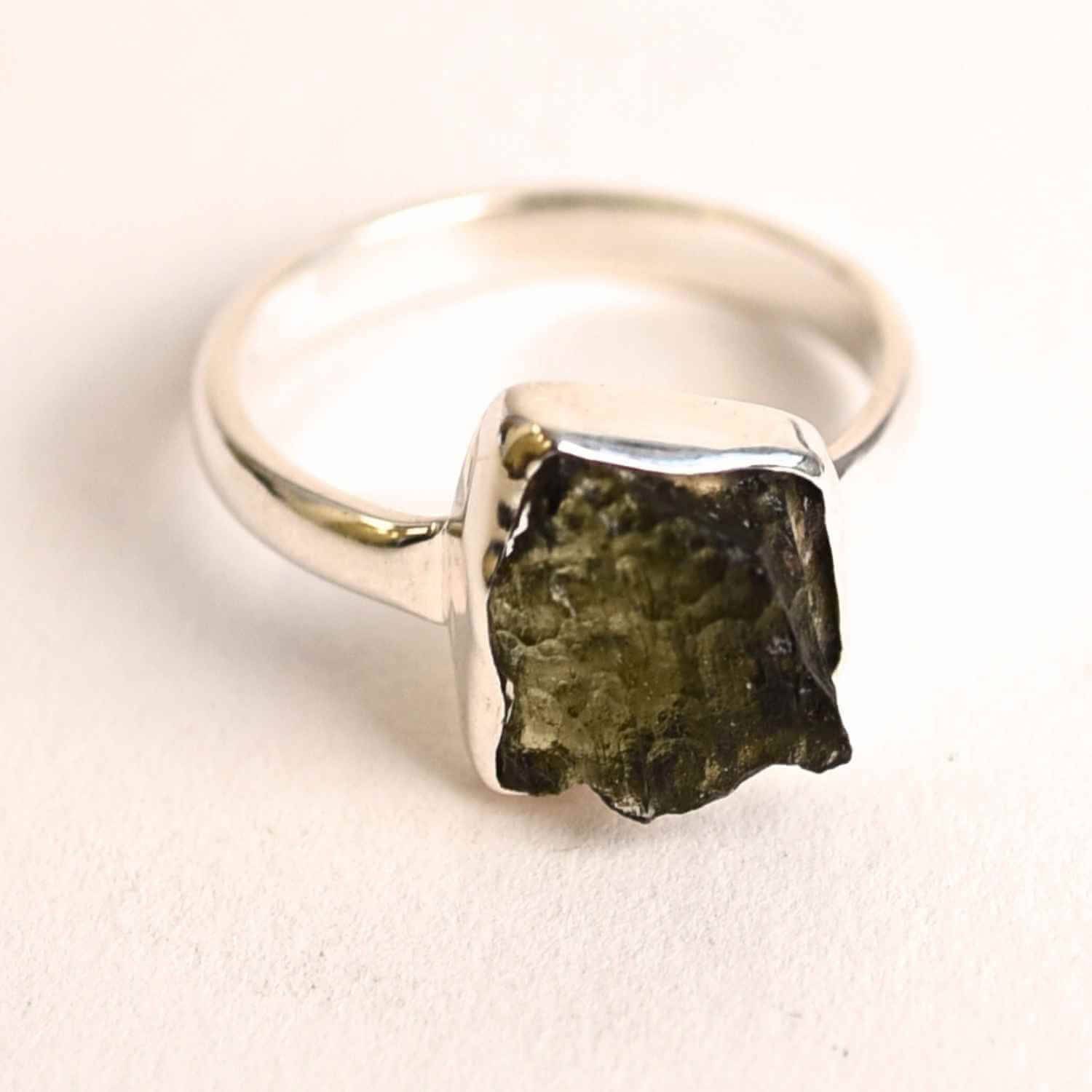 Descoperă cum să accesezi o protecție incredibilă și o evoluție spirituală absolut unică cu acest inel cu moldavit natural și montură din argint 925.