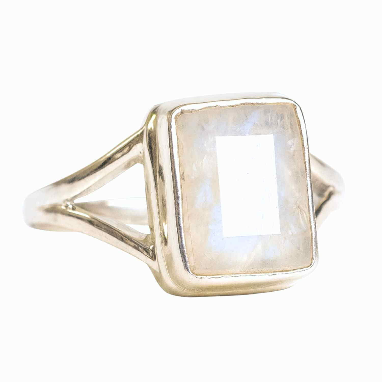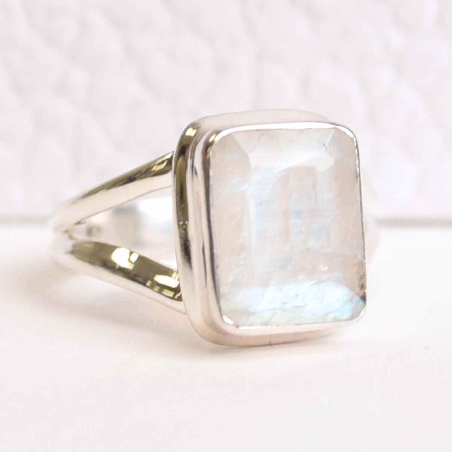 Inel Argint 925 cu Piatra Lunii Fatetata Dreptunghiulara – Echilibru Emotional si Claritate Interioara