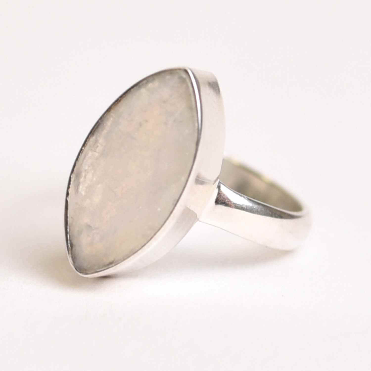 Inelul cu Piatra Lunii in forma de marquise (naveta) radiaza eleganta si mister. Forma alungita, asemenea unei semiluni, simbolizeaza femininul sacru, intuitia si renasterea ciclica, iar reflexiile albe-albastrui ale pietrei aduc liniste si claritate interioara. Piatra Lunii este o amuleta a luminii sufletului, purtata pentru a echilibra emotiile si a deschide inima catre armonie.