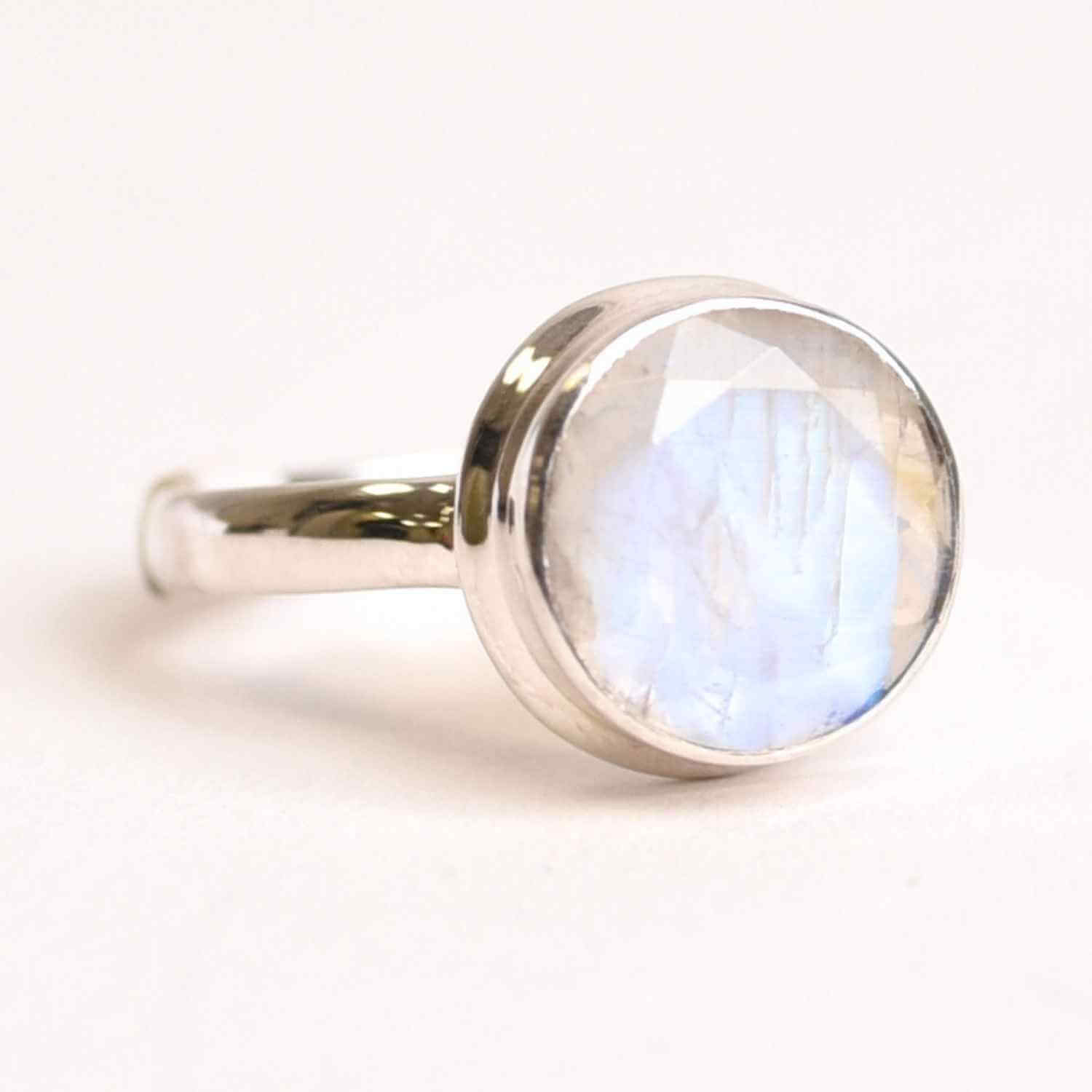 Acest inel elegant din argint 925, cu Piatra Lunii fatetata rotunda, este o oda dedicata feminitatii si luminii interioare.