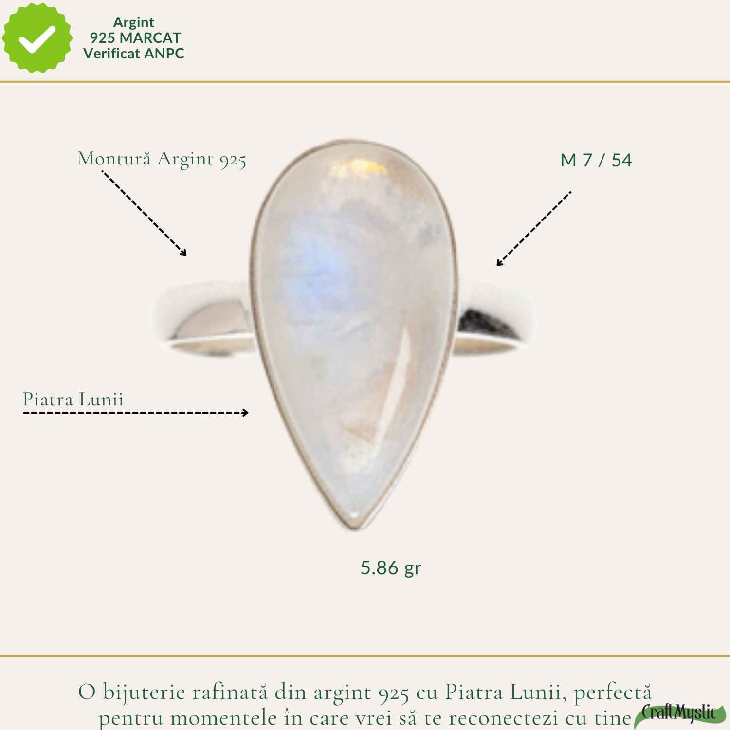 Inel Argint 925 cu Piatra Lunii Lacrimă – Echilibru Emoțional si Intuitie