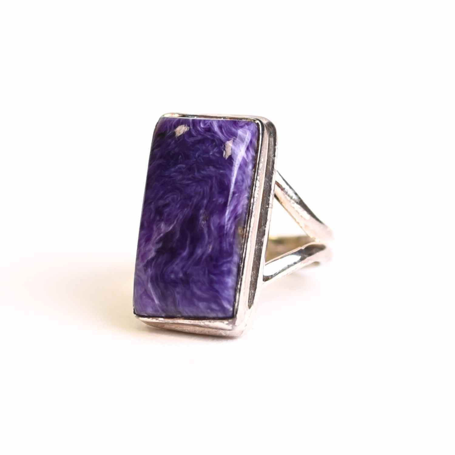 Inel argint 925 cu piatra naturala Charoite dreptunghi - Claritate si Transformare