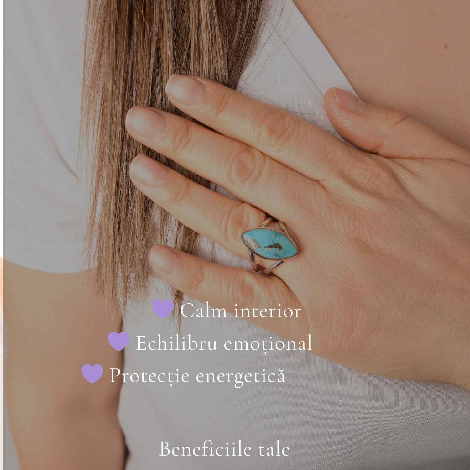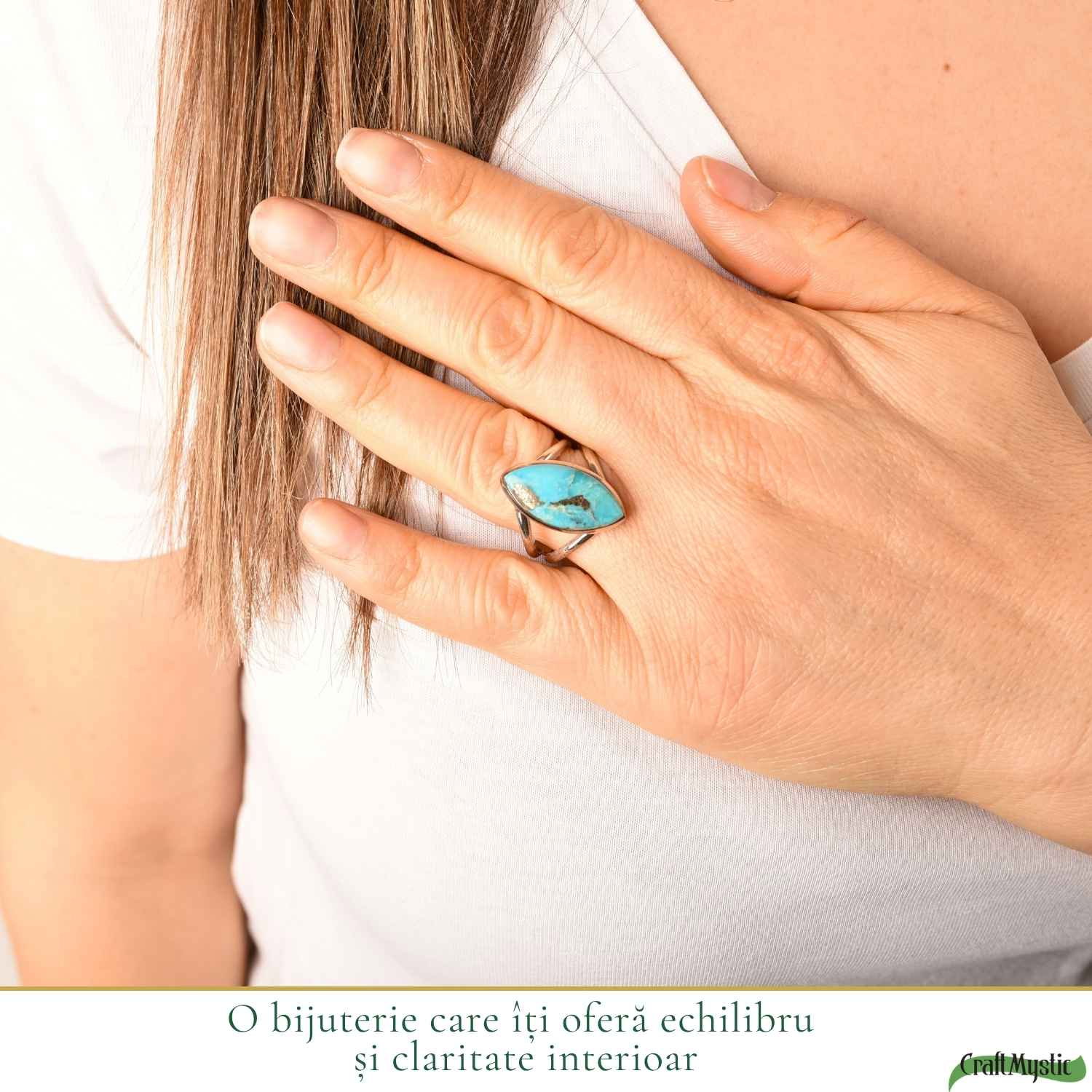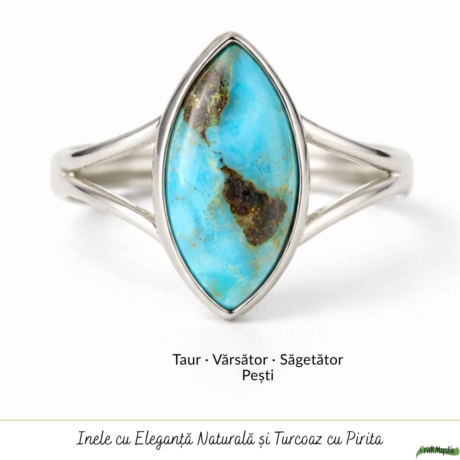 Turcoazul este considerat o piatră a protecției și a liniștii interioare, purtată de secole ca talisman. Inserțiile de pirită adaugă o energie de forță și stabilitate, creând un contrast natural spectaculos.