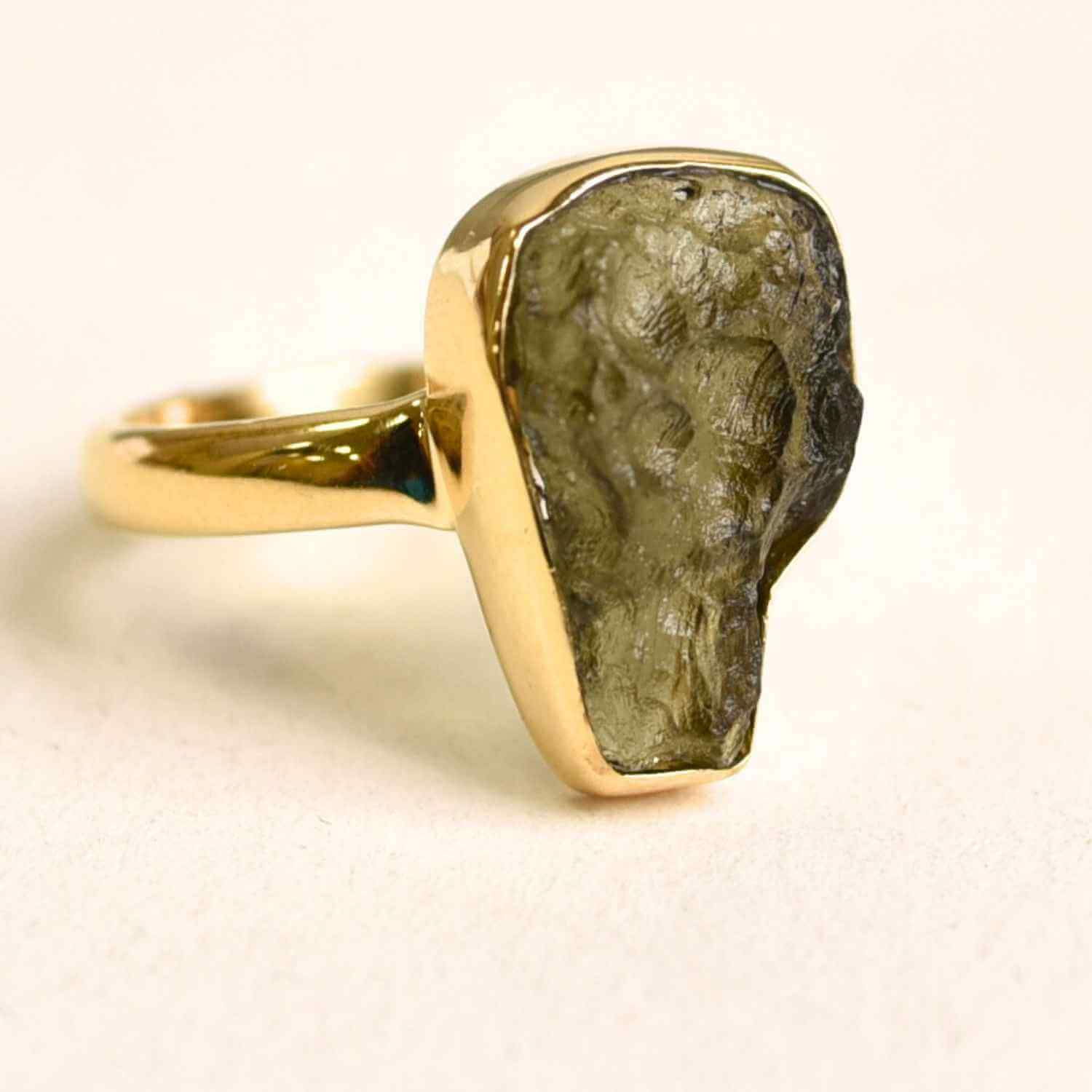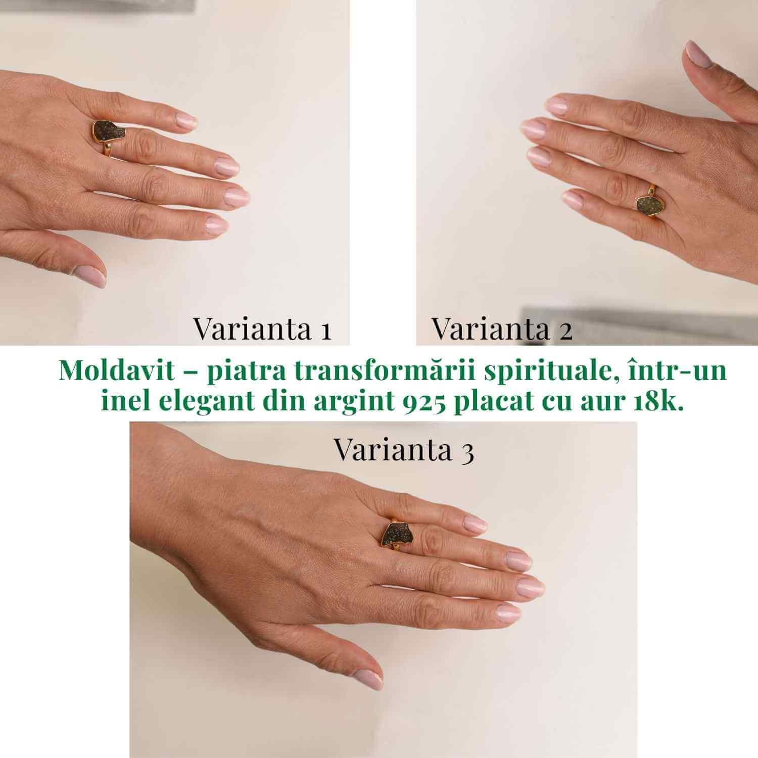 Inel argint 925 placat aur 18k cu Moldavit natural brut Marime 53-54 (EU) / 7 (US) – Piatra transformarii si protectiei