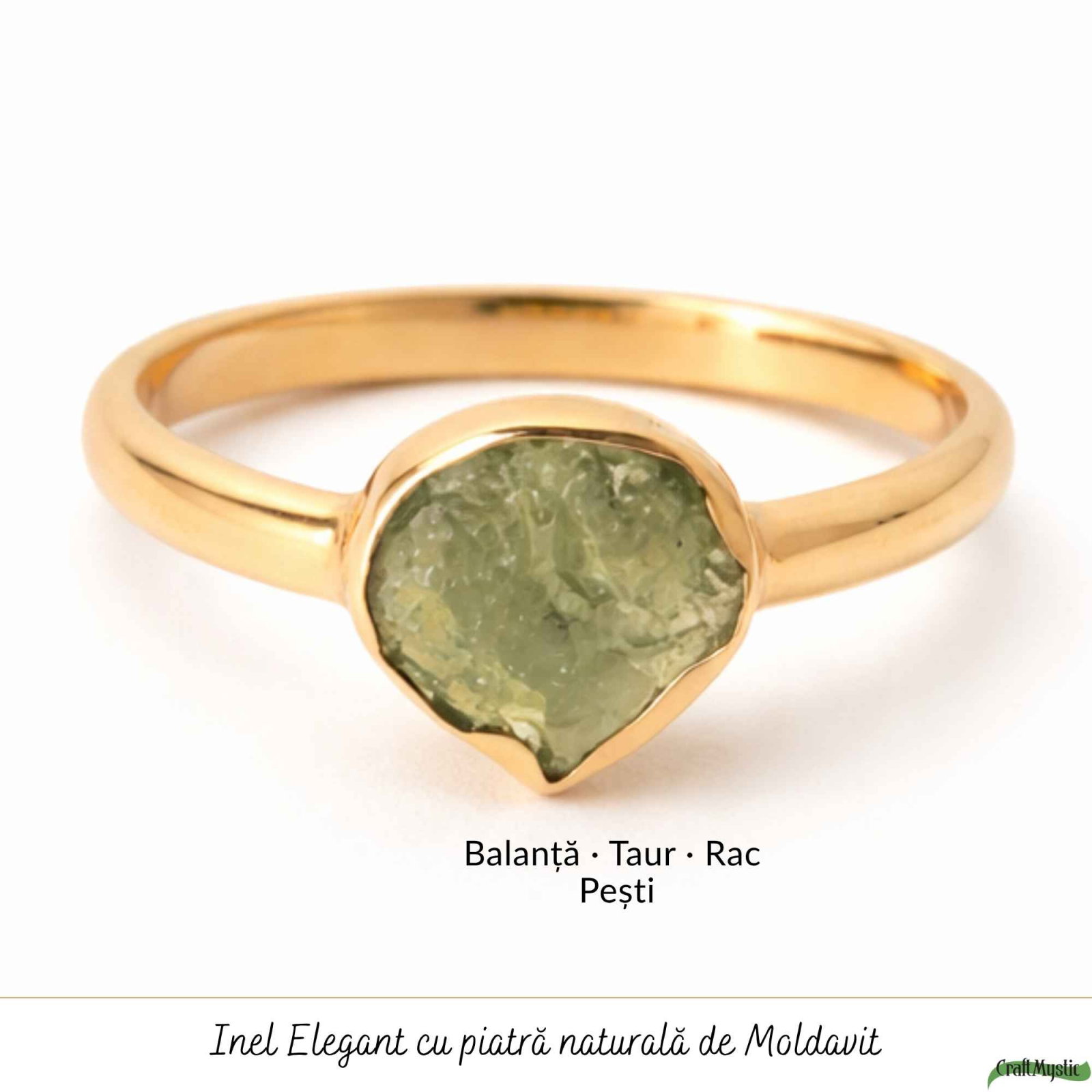 Un inel din argint 925 placat cu aur de 18K, cu moldavit brut natural – o piatră rară, cu energie intensă și transformatoare. Forma sa neuniformă reflectă autenticitatea pură, iar designul ușor îl face atât de confortabil încât vei uita că îl porți.