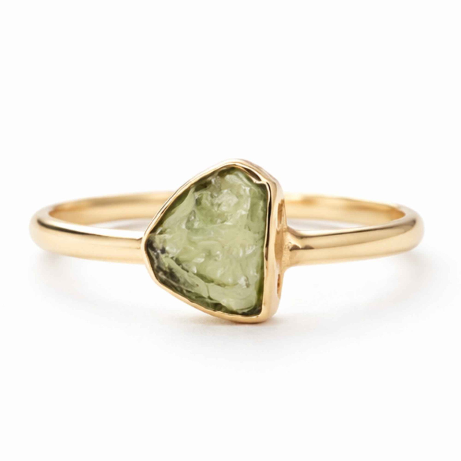 Un inel delicat din argint 925 placat cu aur de 18K, cu moldavit brut natural – o piatră rară, cu energie intensă și origine cosmică. Forma sa neuniformă păstrează autenticitatea pură, iar greutatea ușoară îl face atât de confortabil încât vei uita că îl porți.