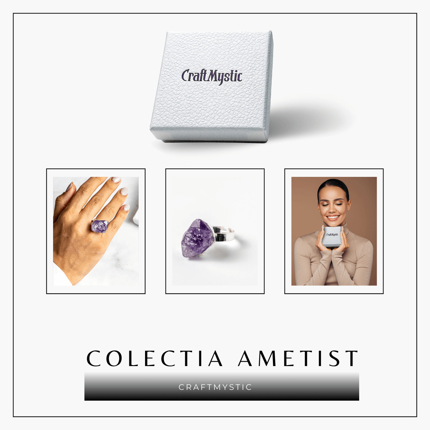 Fiecare piatră de Ametist este lucrată manual, ceea ce face ca fiecare inel să fie unic. Pot exista mici diferențe de culoare și textură față de imaginile prezentate, oferind fiecărei piese un farmec distinctiv și autentic. Produsul va fi livrat într-un săculeț de catifea sau o cutie cadou, gata pentru a fi oferit.