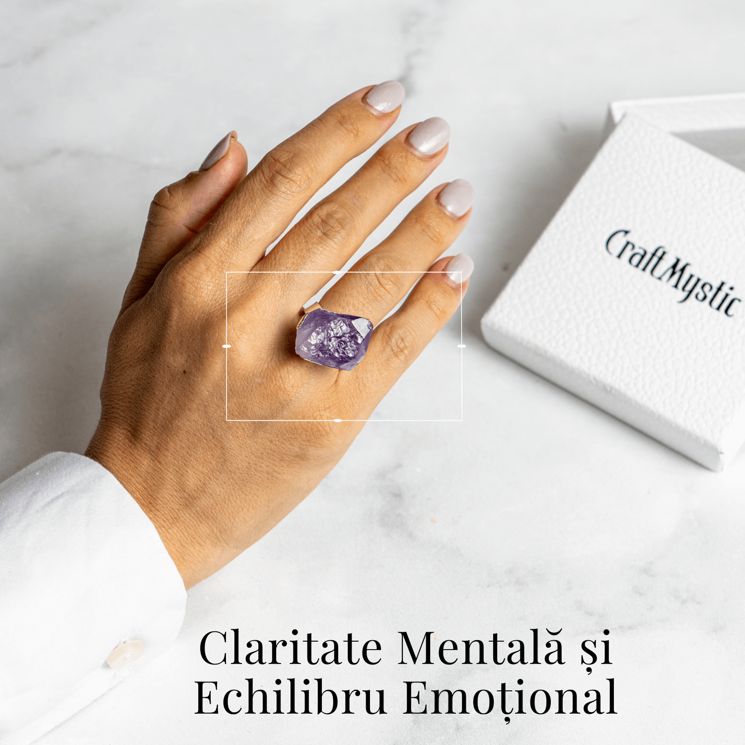 Ametistul este cunoscut pentru proprietățile sale de a aduce calm, claritate mentală și protecție spirituală. Purtând acest inel, vei simți o stabilitate emoțională și o protecție sporită împotriva energiilor negative. Ametistul ajută la reducerea stresului, la ameliorarea anxietății și la favorizarea unui somn liniștit.