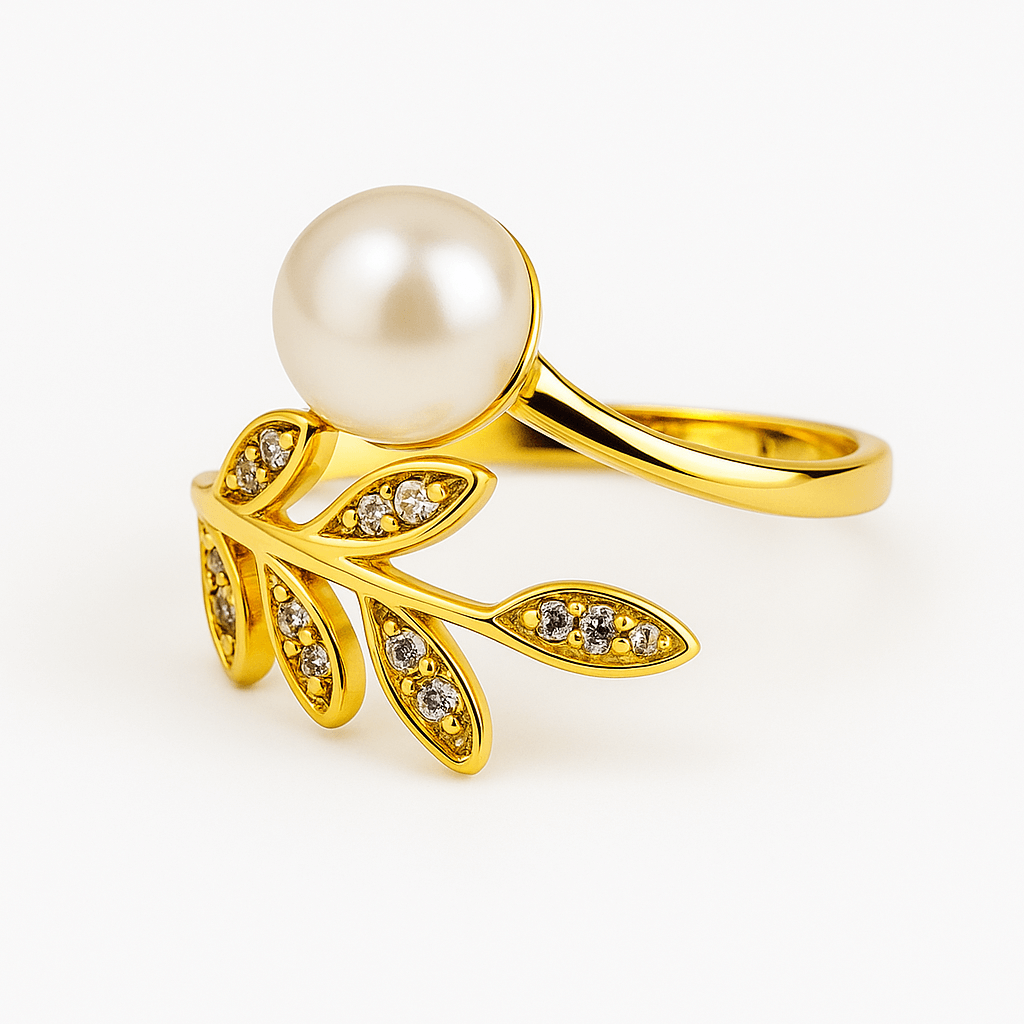 „Inelul cu perlă și frunză aurie” este mai mult decât o bijuterie – este o celebrare a rafinamentului natural.