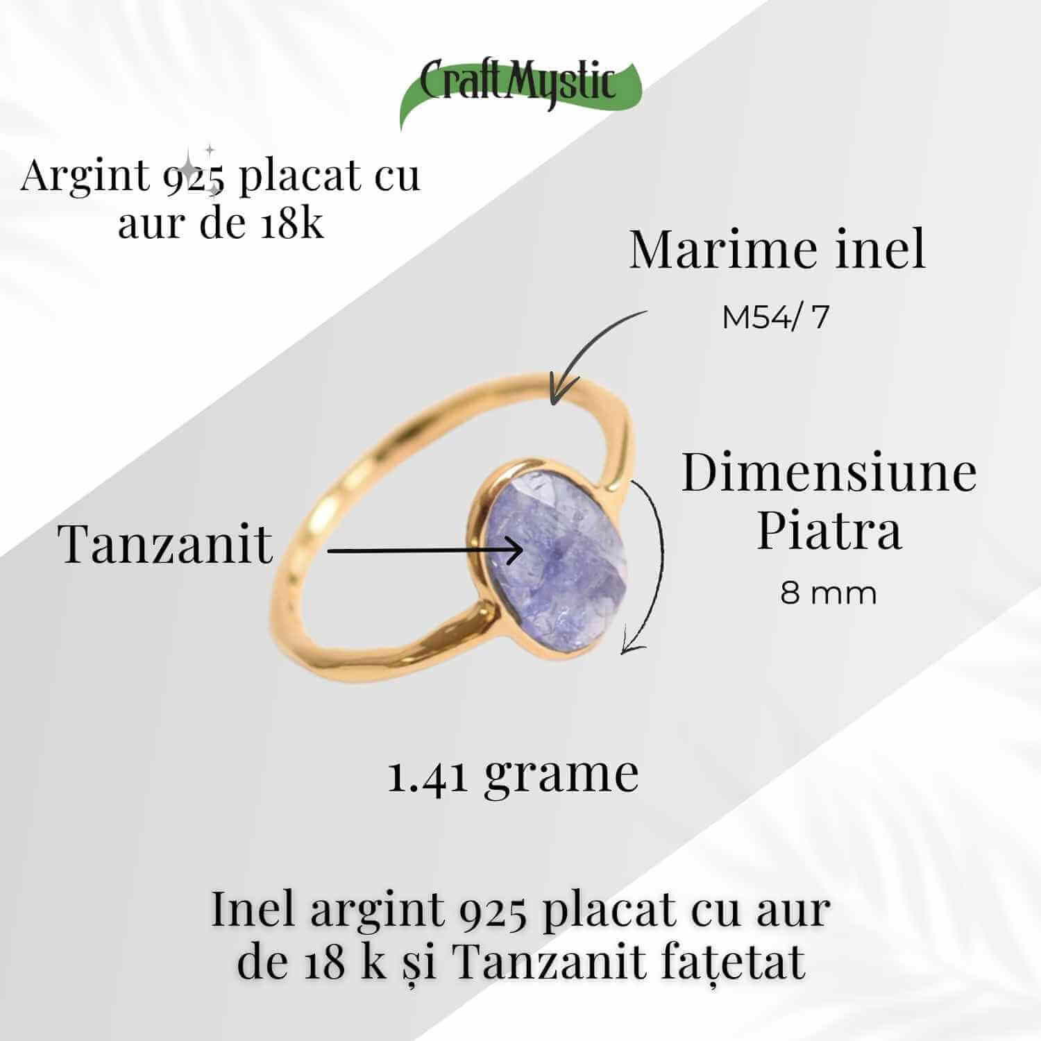 Inel cu Tanzanit Fatetat din Argint 925 placat cu Aur de 18K 1.53 gr M53/6.5 – Claritate Mentala si Activare Spirituala