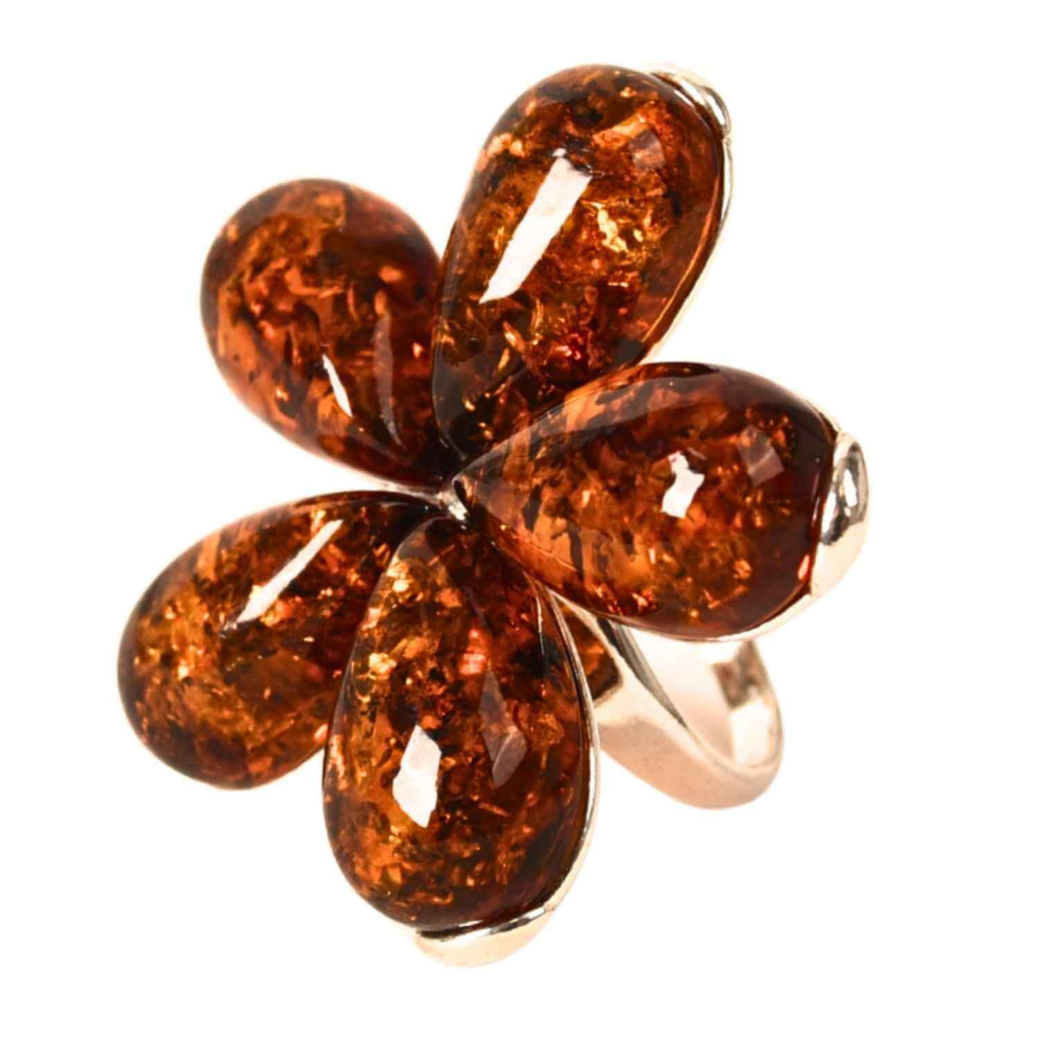 Inel floare din argint 925 cu chihlimbar natural – Floare a caldurii interioare