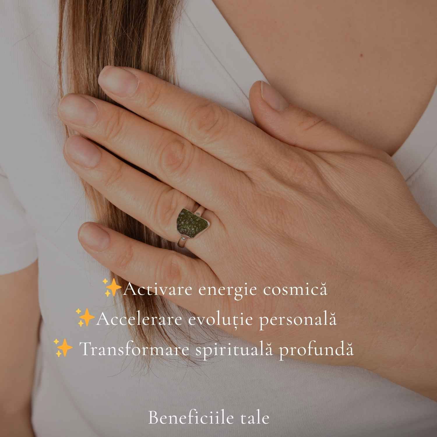 Un inel din argint 925 cu moldavit brut natural, o piatră rară cu energie intensă și profundă. Forma sa unică reflectă autenticitatea, iar vibrația sa susține transformarea și claritatea interioară. Este ușor și confortabil, dar cu o prezență care se simte.