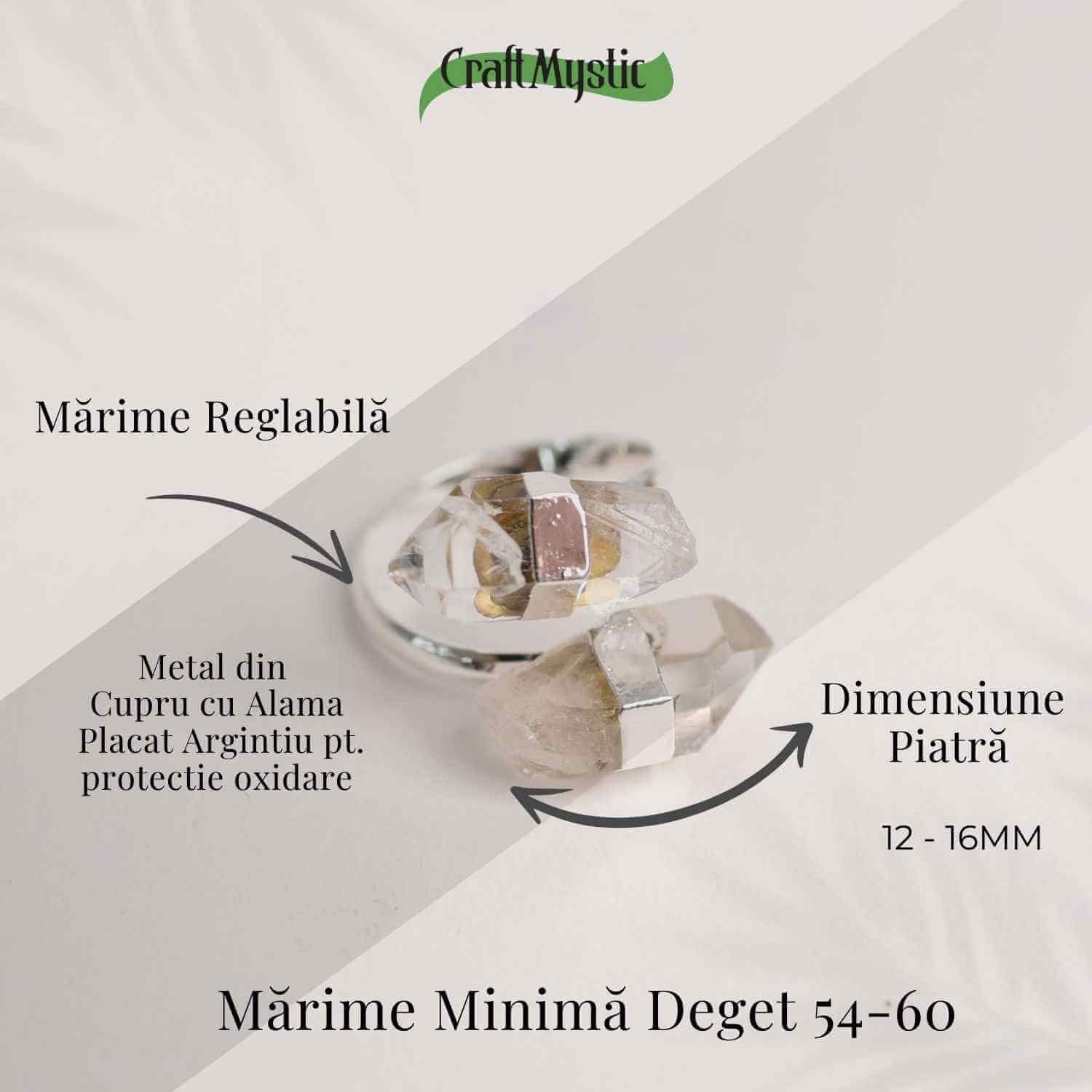 - Dimensiune totală a inelului: Piatra are dimensiuni între 12-16 mm, iar inelul este reglabil, potrivit pentru mărimi 54-60.