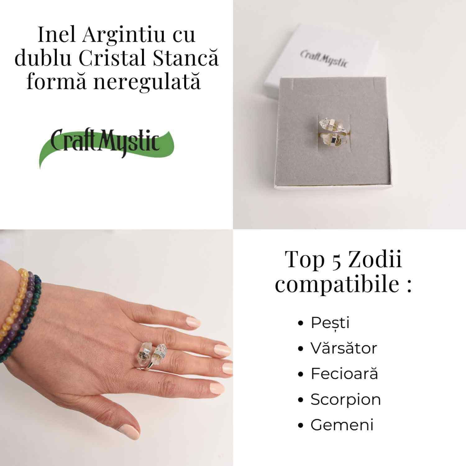 Completează-ți stilul și atrage echilibrul și claritatea de care ai nevoie cu acest inel unic din cristal stâncă!