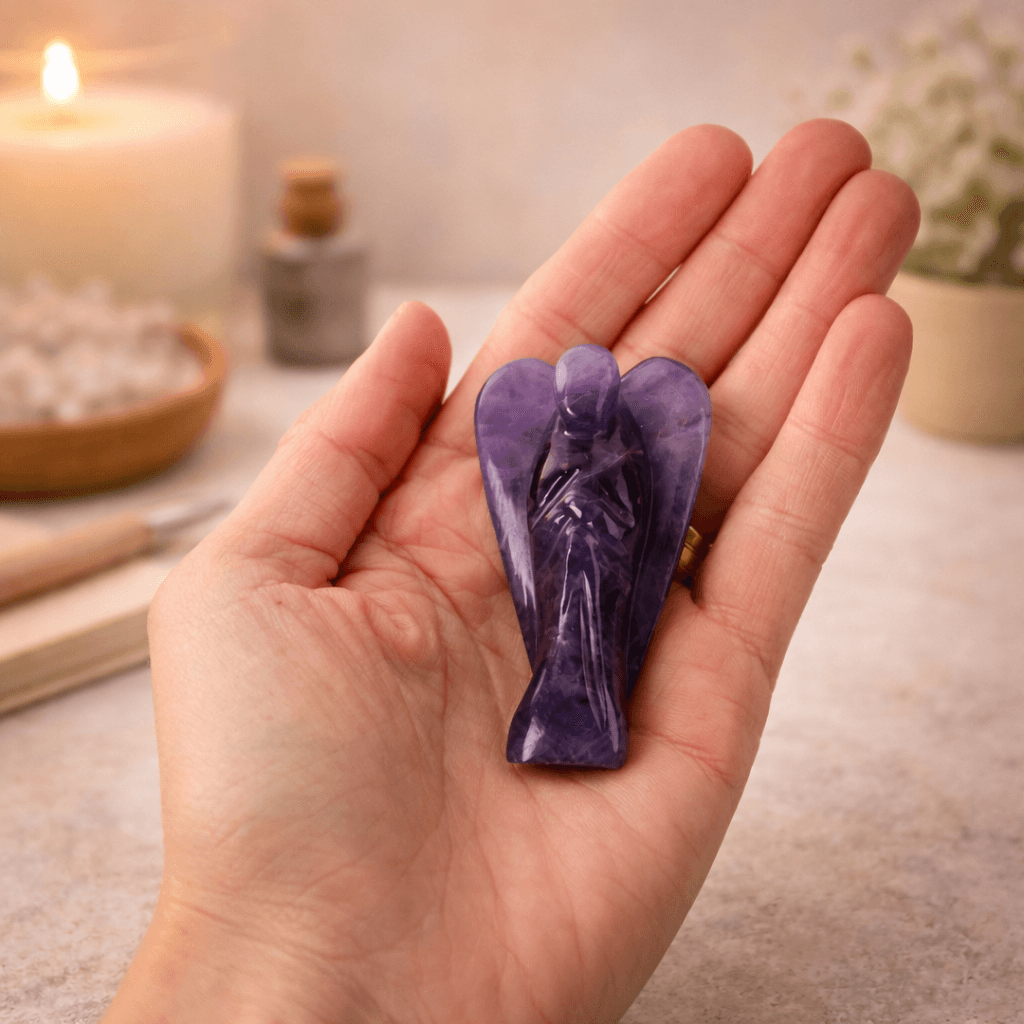 Lasa acest inger din ametist sa vegheze asupra spatiului tau, aducand liniste, protectie si claritate. Este un simbol al increderii ca esti sustinuta si ghidata, chiar si in cele mai tacute momente ale vietii.