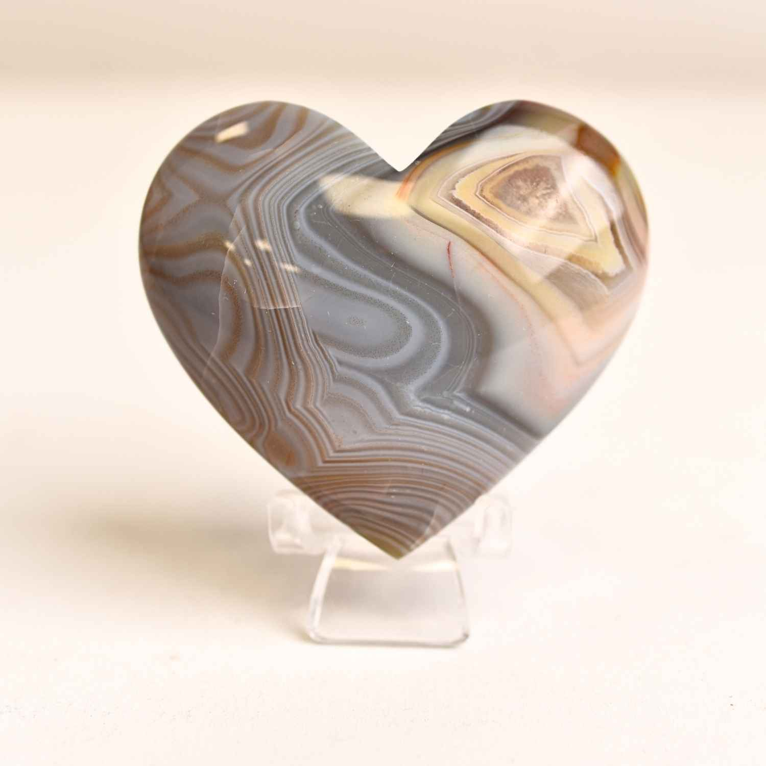 Această piesă unică este sculptată manual în Indonezia, având o textură netedă, vibrantă, cu nuanțe fascinante de gri, caramel și bej, dispuse în benzi concentrice naturale. Fiecare inimă este unicat, cu un model de stratificare spectaculos.
