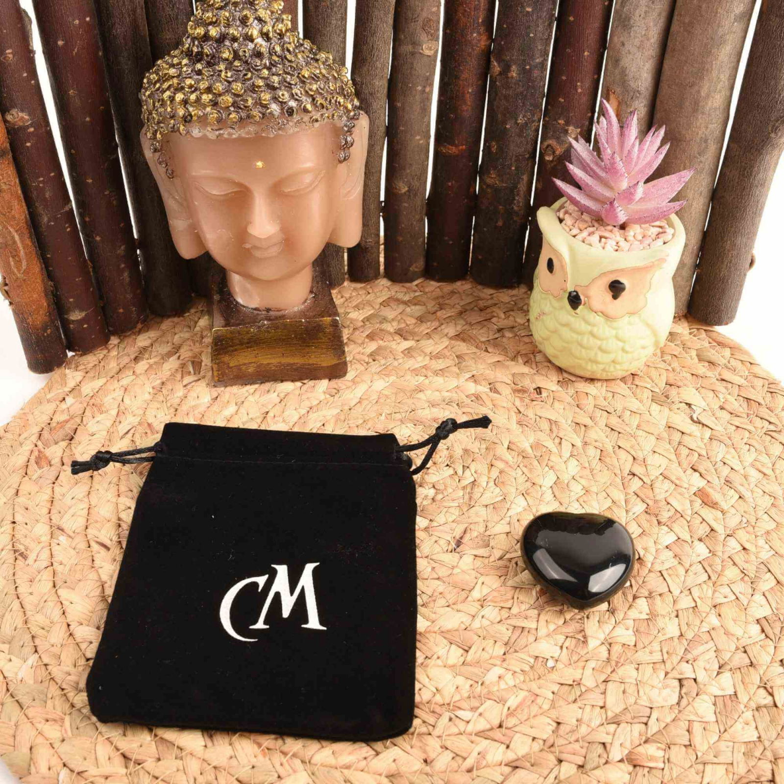 Inimioara cristal Obsidian Negru 4 cm si saculet satin inclus - pentru protectie, stabilitate si armonie