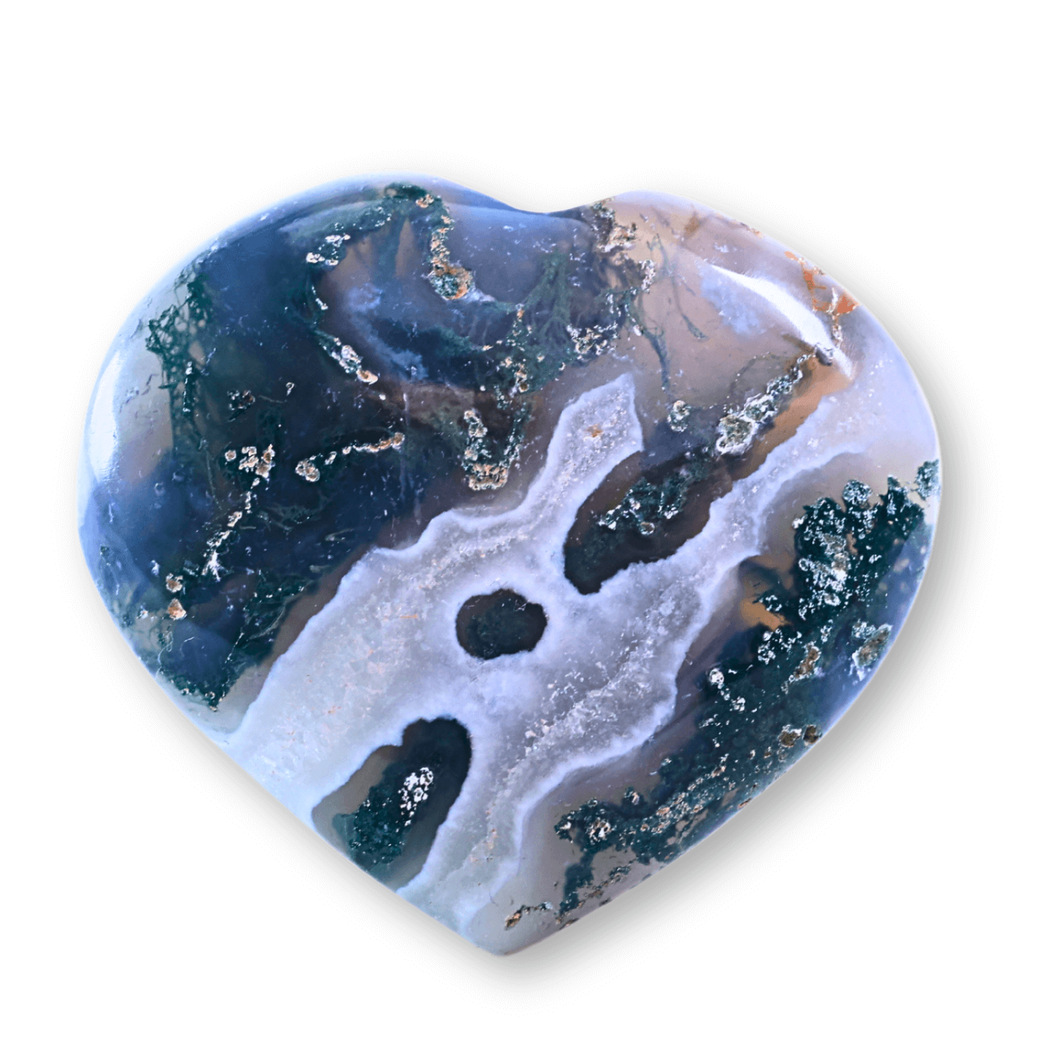 Descoperă secretul armoniei și vindecării cu această inimioară din piatră naturală de Agat Mușchi!