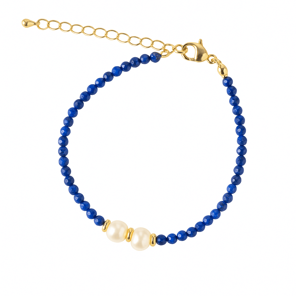 Simbol al cerului instelat si al puritatii, aceasta bratara imbina profunzimea Lapisului Lazuli cu delicatetea perlei naturale. Forma bratarii, simpla si rafinata, inspira echilibru si eleganta, iar combinatia celor doua pietre aduce lumina interioara, intelepciune si blandete feminina.