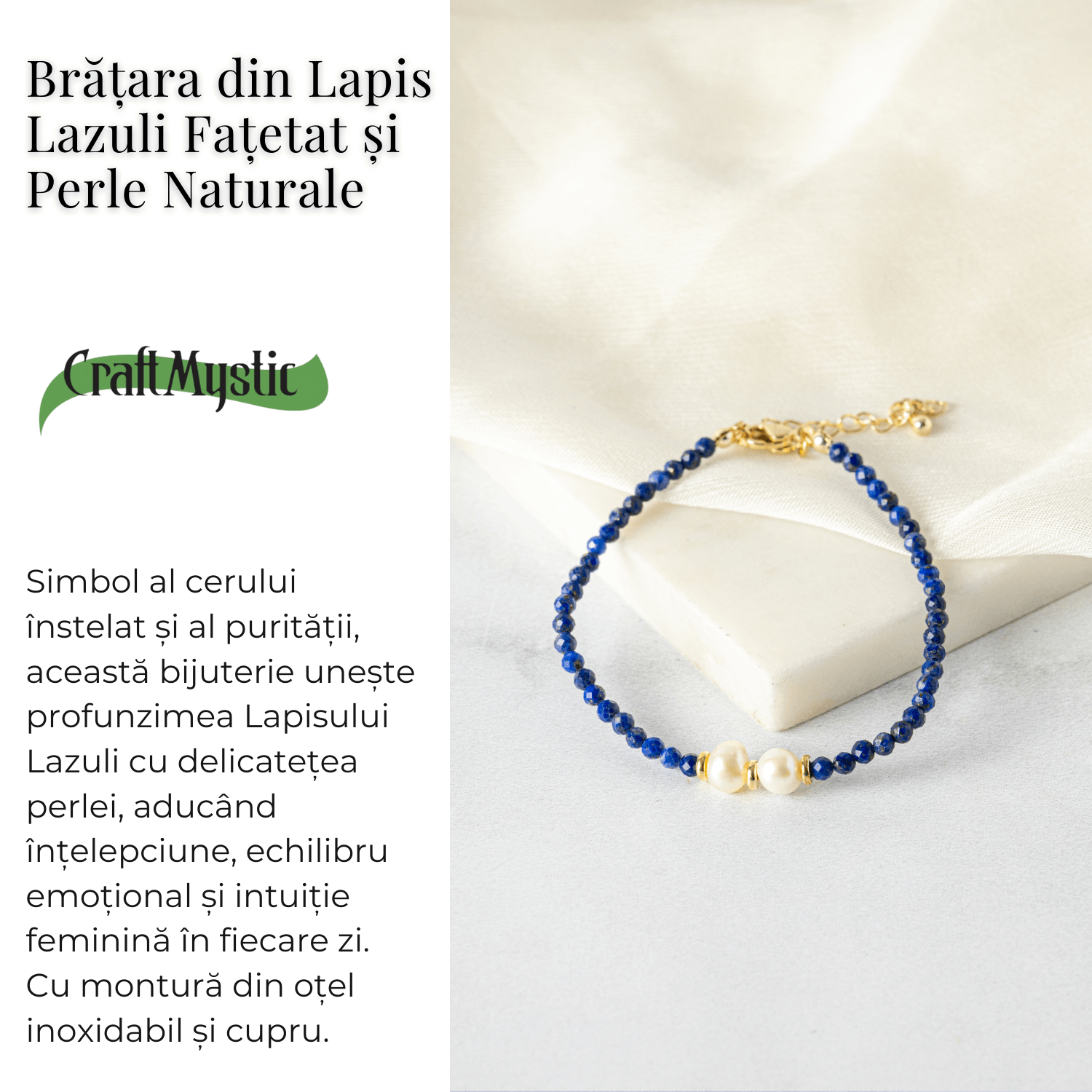 Aceasta bratara este potrivita pentru femeile care cauta echilibru intre minte si suflet, pentru cele care doresc sa isi exprime feminitatea cu rafinament si pentru persoanele ce apreciaza simbolistica spirituala a cristalelor si perlelor naturale.
