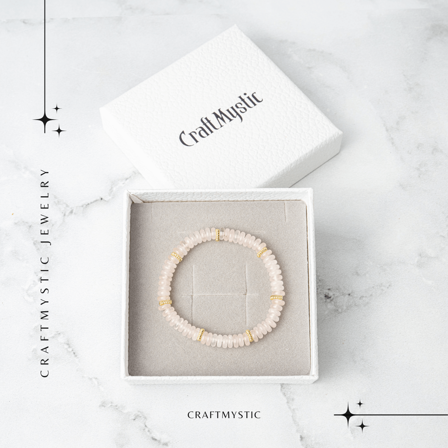 Când porți această brățară, simți o stare de liniște și afecțiune. Cuartul roz radiază o energie blândă, care deschide inima spre iubire, compasiune și echilibru emoțional.