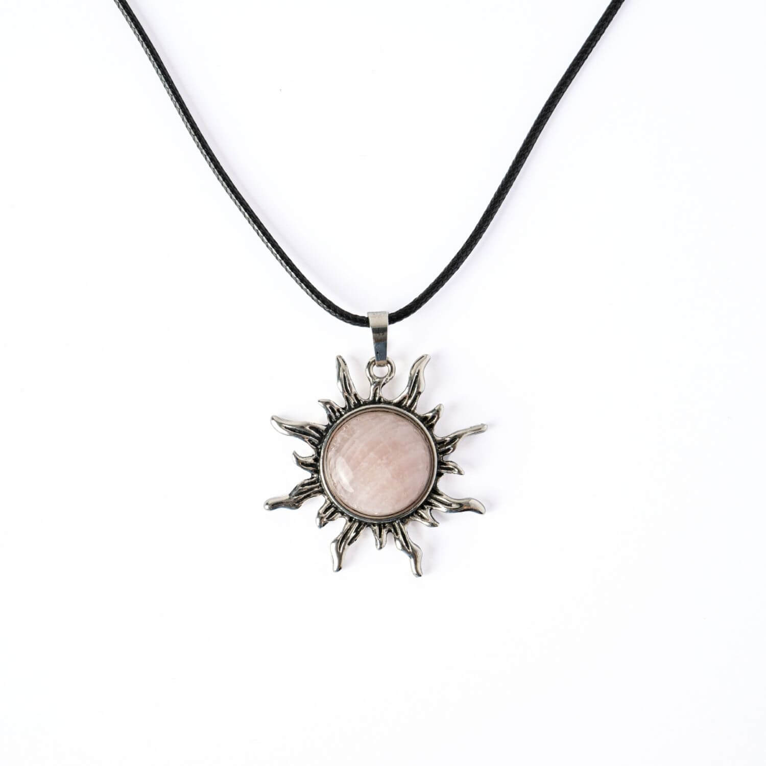 Poartă Iubire și Armonie – Colier Soare cu Cuart Roz Natural și lasă energia blândă a pietrei să-ți lumineze viața cu iubire, echilibru și frumusețe interioară.