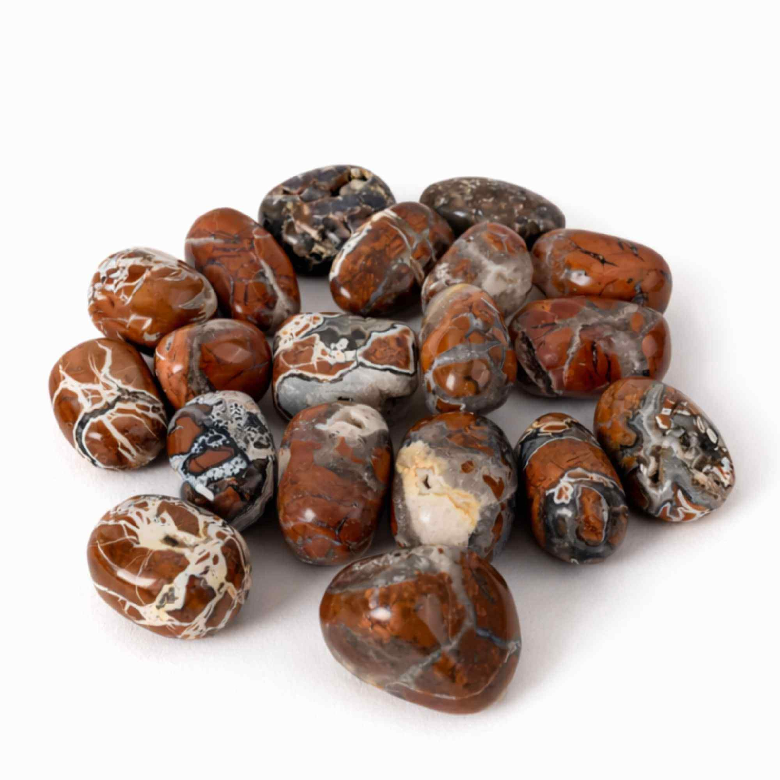 Pietrele rulate de jasp breciat induc o stare de stabilitate și siguranță calmă. Prin combinația naturală de tonuri pământii și texturi unice, această piatră este asociată cu ancorarea în prezent și cu susținerea unei energii constante, fără grabă.