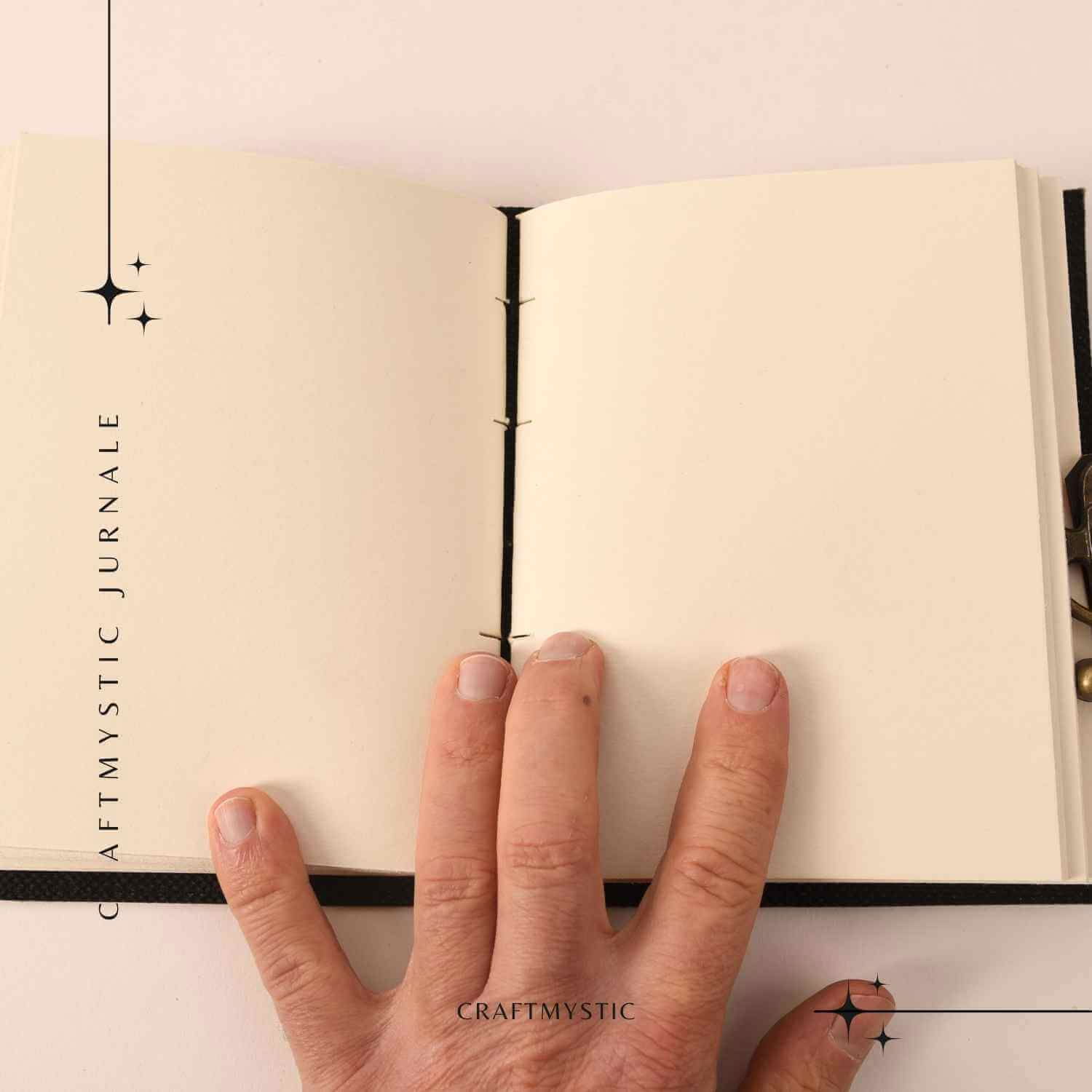 cusătură interioară artizanală, care permite deschiderea comodă a jurnalului;