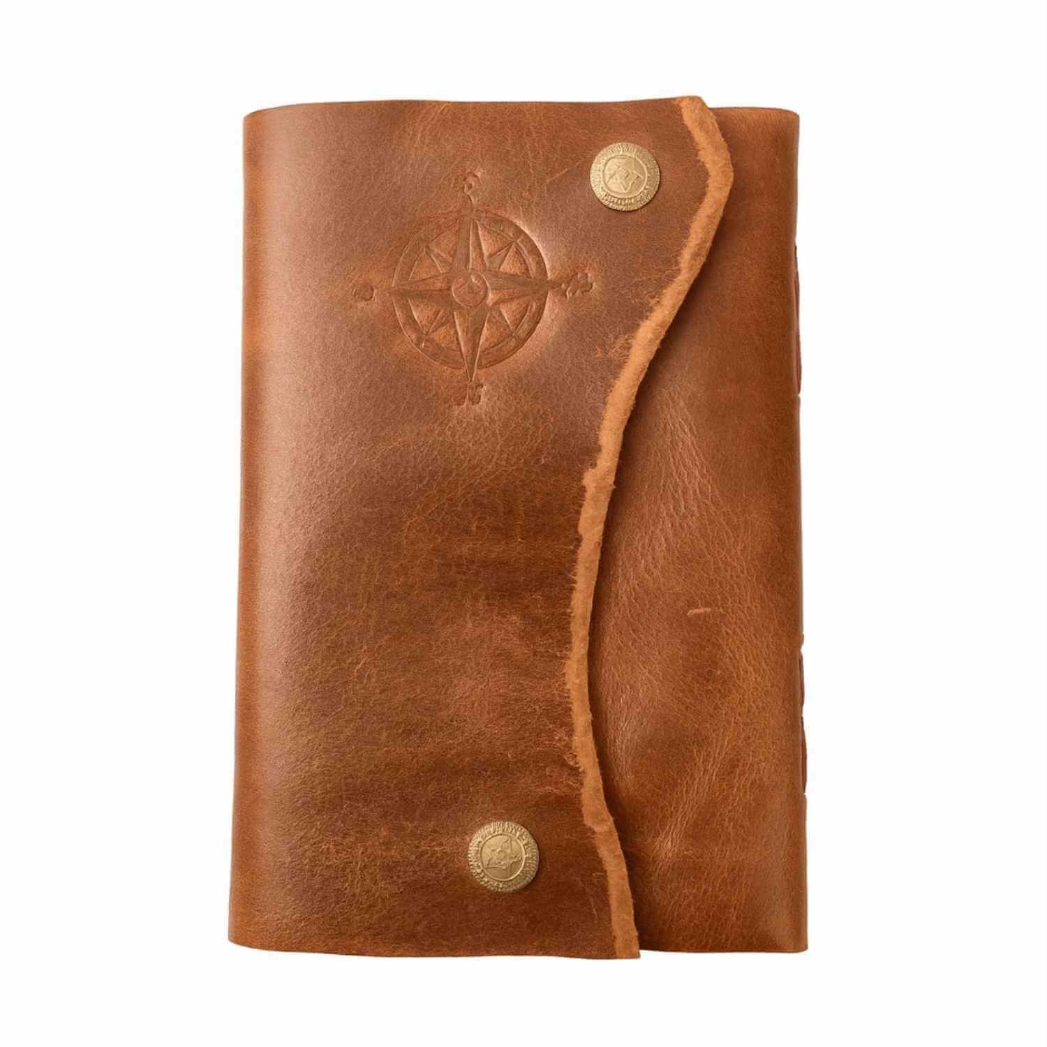 copertă din piele naturală prelucrată manual, cu aspect rustic premium;