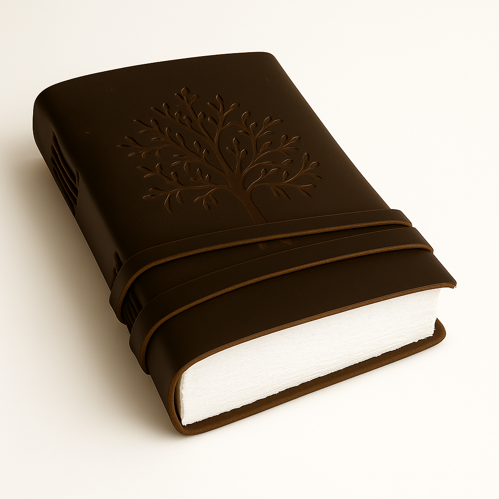 Acest jurnal din piele naturală, cu simbolul Arborelui Vieții pe copertă, este ideal pentru persoanele care își doresc să își exprime gândurile, să scrie, să deseneze sau să țină evidența meditațiilor și momentelor de reflecție. Jurnalul este lucrat manual, folosind materiale naturale și hârtie vintage albă de bumbac, conferindu-i un aspect autentic și elegant. Cu o închidere pe sfoară de piele, acest jurnal este nu doar un obiect de papetărie, ci și un simbol al conexiunii cu natura, înțelepciunii și creșterii personale.
