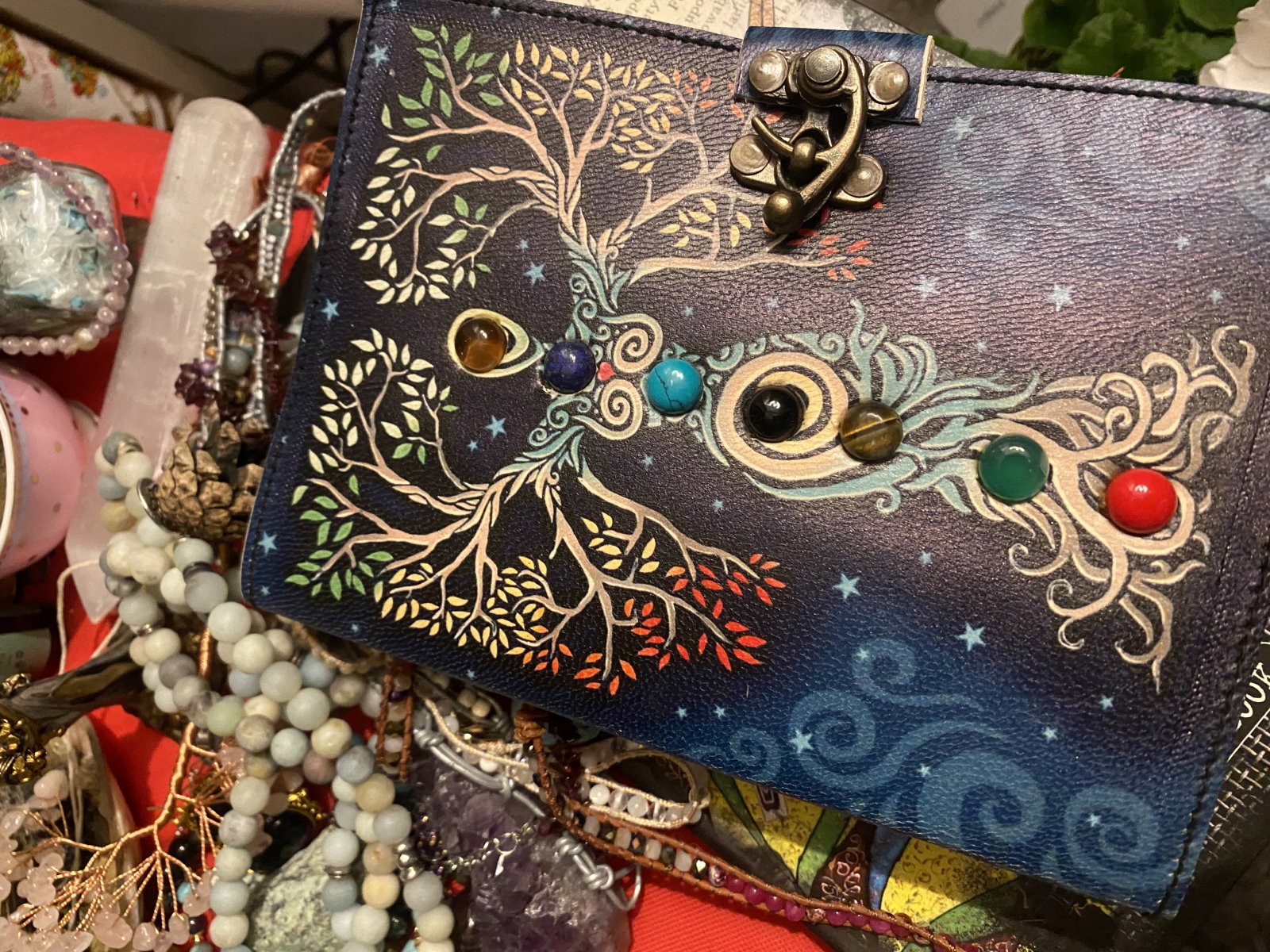 Jurnalul este dragut, putin mai mic decat ma asteptam, dar e okay. Imi place desenul de pe coperta, culorile si am deja o retea de cristale pe el. Nu cred ca pietrele sunt sintetice, se vad tot felul de incluziuni in ele sub lupa.