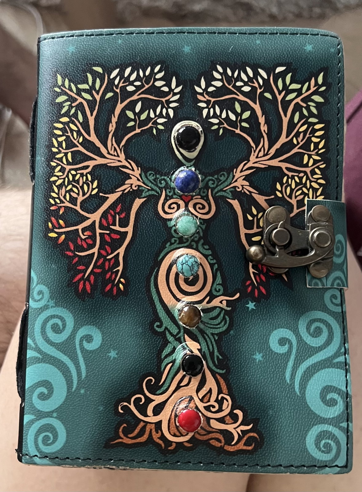 Cele 7 pietre decorative reprezintă cele 7 chakre și adaugă un element simbolic discret, fără a încărca vizual jurnalul.