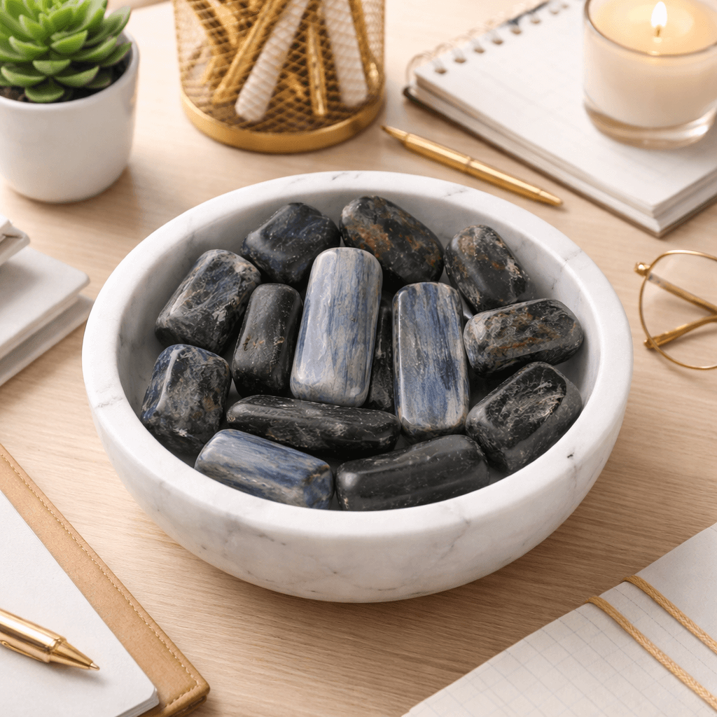 Kianitul poate fi purtat în buzunar, așezat pe birou, lângă pat sau într-un spațiu de meditație. Poate fi ținut în mână în momente de reflecție, jurnalizare sau respirație conștientă, devenind un punct de ancorare în prezent.