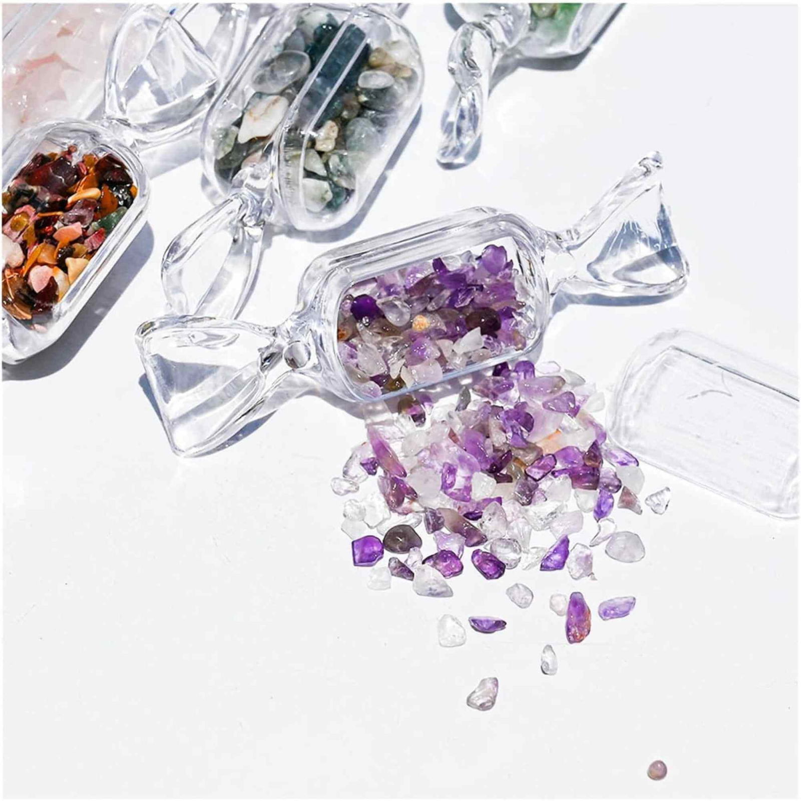 Calitate Premium și Frumusețe Naturală: Aceste "bomboane cu cristale" sunt confecționate din pietre naturale prelucrate prin tratament termic și lustruire, conservând culoarea naturală a pietrei. Suprafața fiecărui cristal este lucioasă, netedă și reflectă farmecul autentic al naturii.